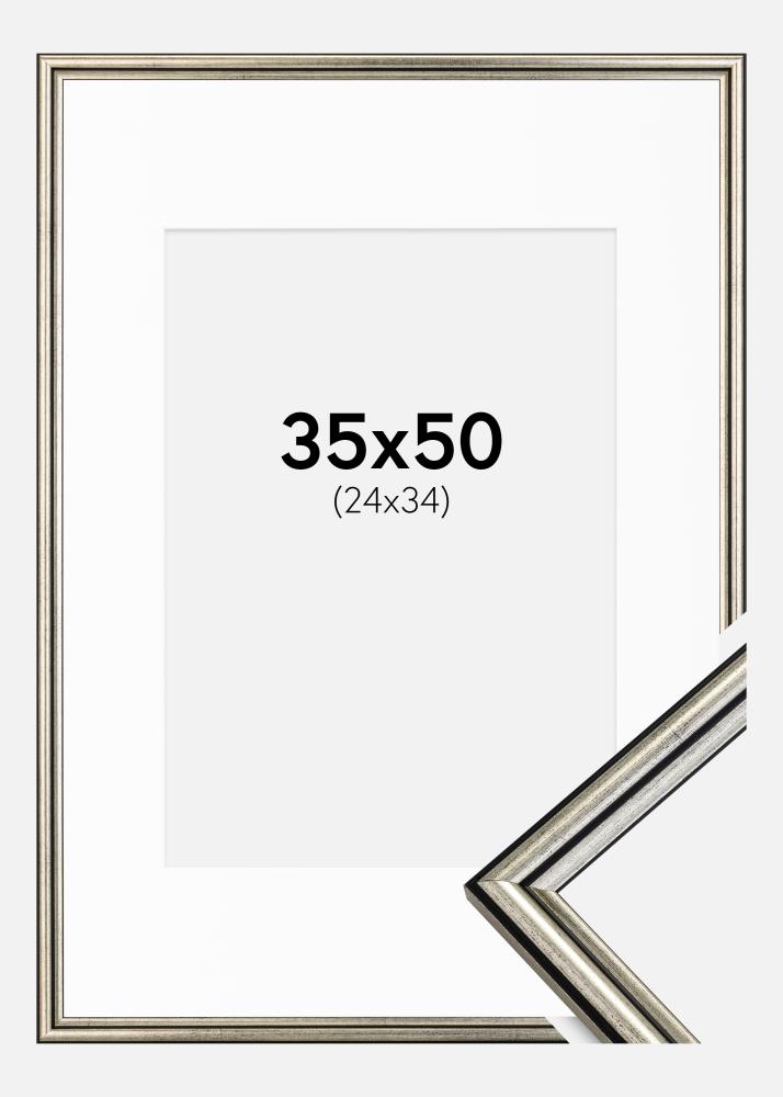 Ramme Horndal Sølv 35x50 cm - Passepartout Hvit 25x35 cm