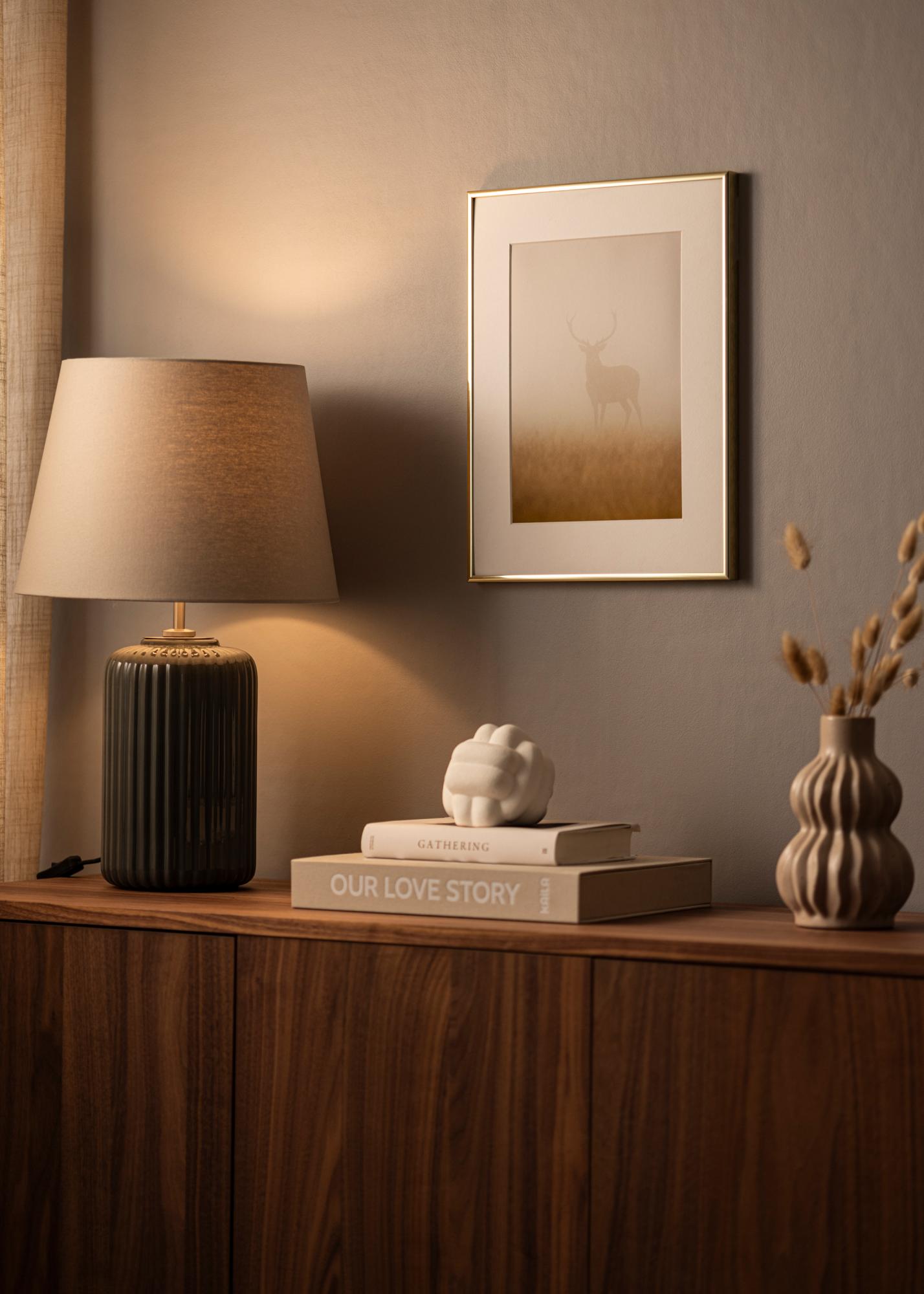 Når du vil ha en ramme som ikke tar over, men vil at dine fine bilder skal stå i sentrum, er "Köpenhamn Gull" et passende valg. Med sin smale blanke profil i aluminium gir "Köpenhamn Gull" en følelse av eleganse og passer inn i nesten alle miljøer.
