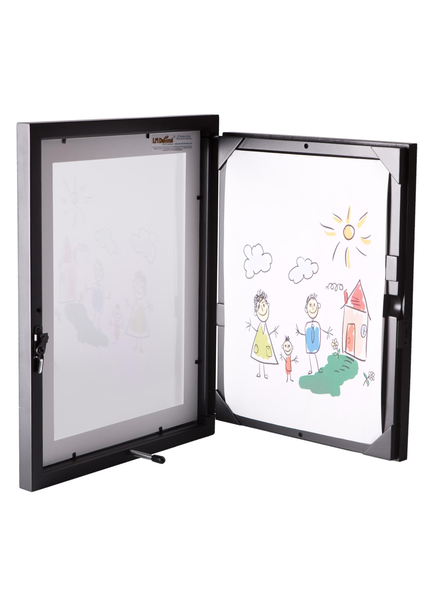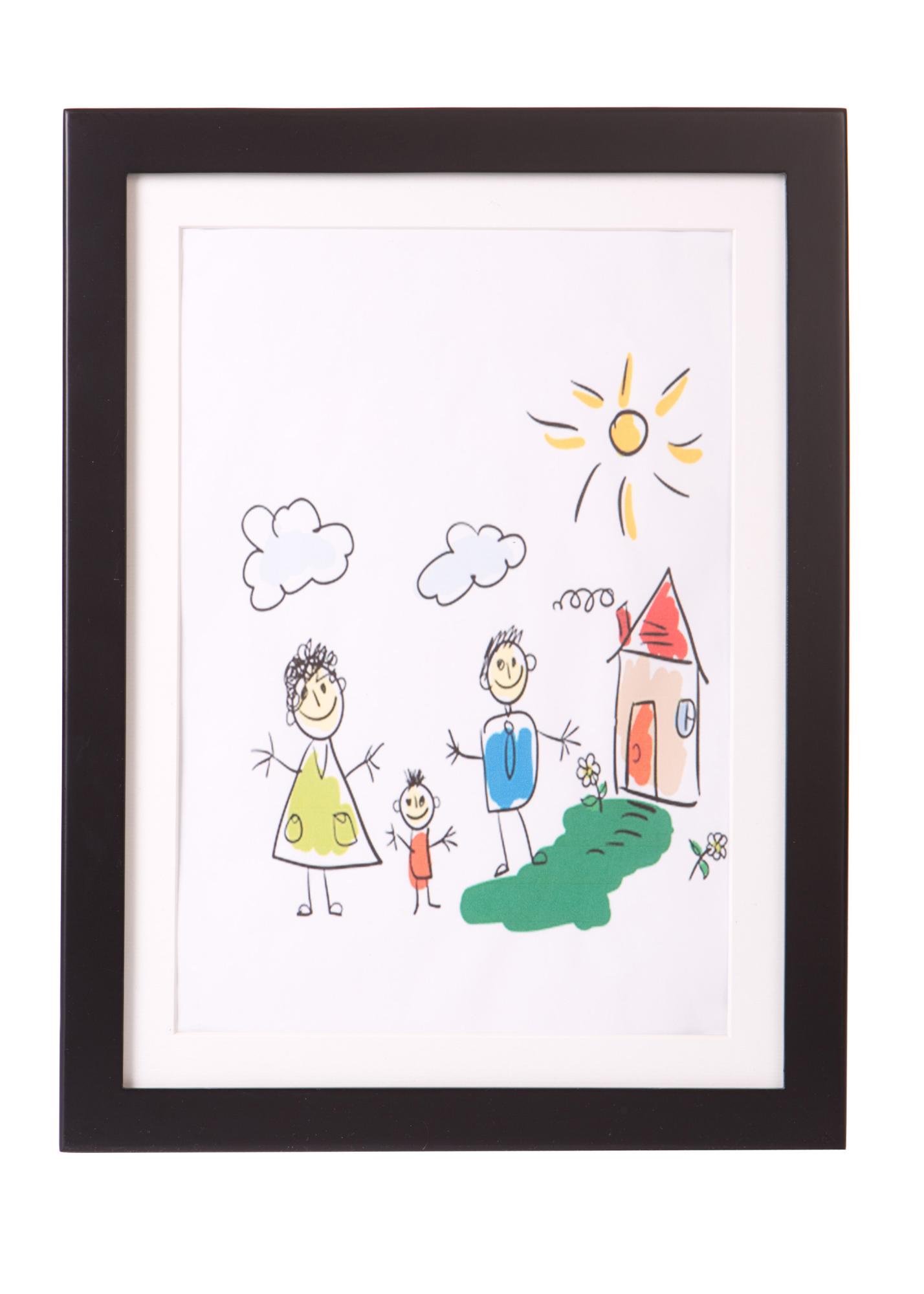 Enkel og grei ramme til barnekunst i A4 størrelse. Perfekt til barnet sine mange tegninger. Bytt enkelt ut tegningene i rammen når nye små kunstverk blir laget. Rammen åpnes enkelt fra siden. Da Vinci ramme til barnekunst er en svart og stilren ramme som passer i alle rom i huset. Den tar godt vare på barnet sine tegninger så de kan spares til fremtiden. Hvorfor ikke la barnet stolt få vise frem bildene sine innrammet og opphengt på veggen på rommet sitt? Perfekt gave til bursdag eller julaften som settes pris på av både store og små. La tegningene, fotografiene eller f.eks. et diplom få en praktisk, enkel ramme og bli en del av innredningen.