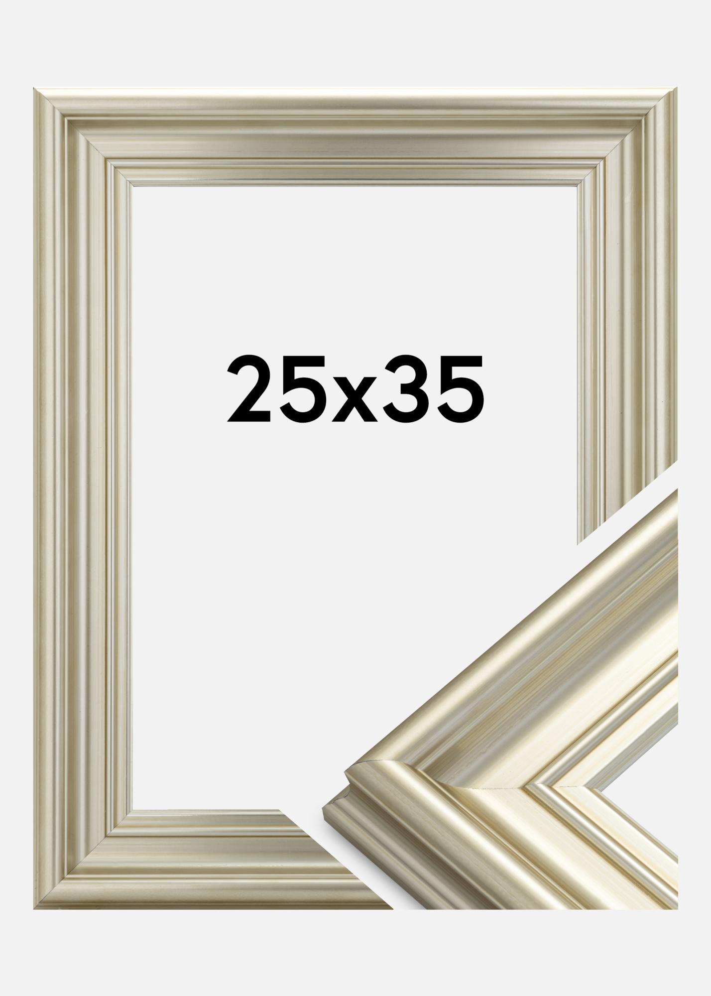 Mora Premium Sølv er en av våre fineste bilderammer. Den er produsert i tre fra de svenske skogene, og montert i vårt eget rammeverksted. Dette gjør at vi kan love en kvalitet utover det vanlige. Rammen har en myk sølvfarget profil i gammel malt stil med en bredde på hele 57 mm. Perfekt til dine fineste bilder!