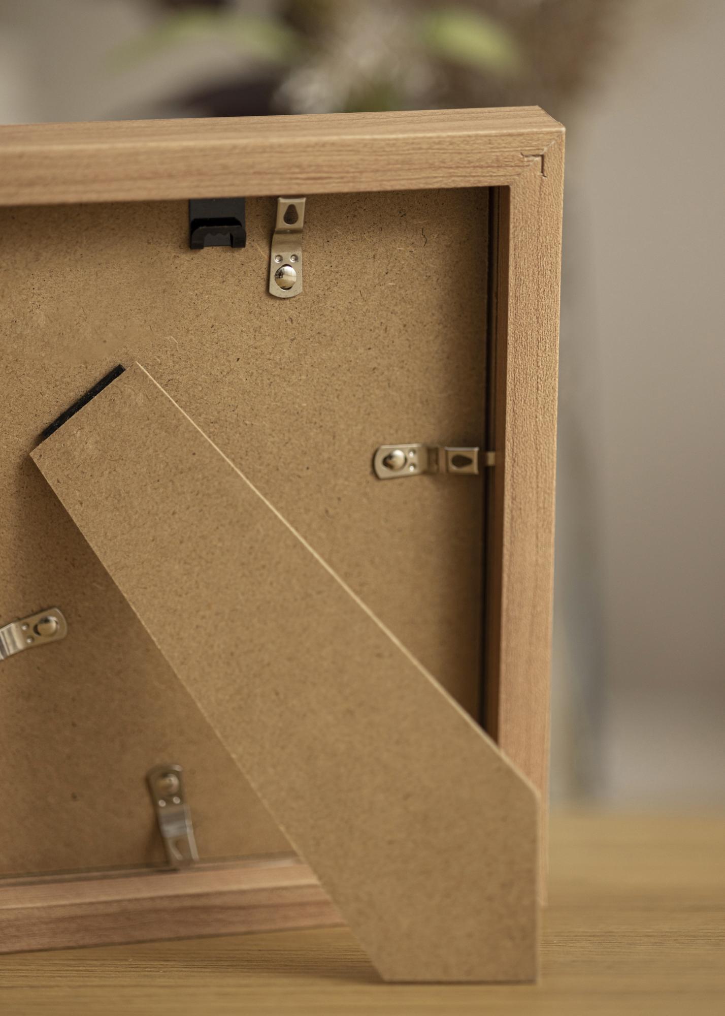 Denne rammen med bøketrefarge kommer til å passe perfekt til de fineste motivene dine og bli en naturinspirert interiørdetalj. Uansett om du planlegger å ramme inn svart-hvit fotokunst eller barnetegninger, kommer bildet ditt i fokus med denne jordnære bilderammen. Rammen er laget av MDF-materiale og utstyrt med ekte glass. På baksiden er det bildeoppheng for enkel opphenging i rommet du vil ha bildet i. For størrelser opptil 20x30 cm følger det også med et integrert støtteben.