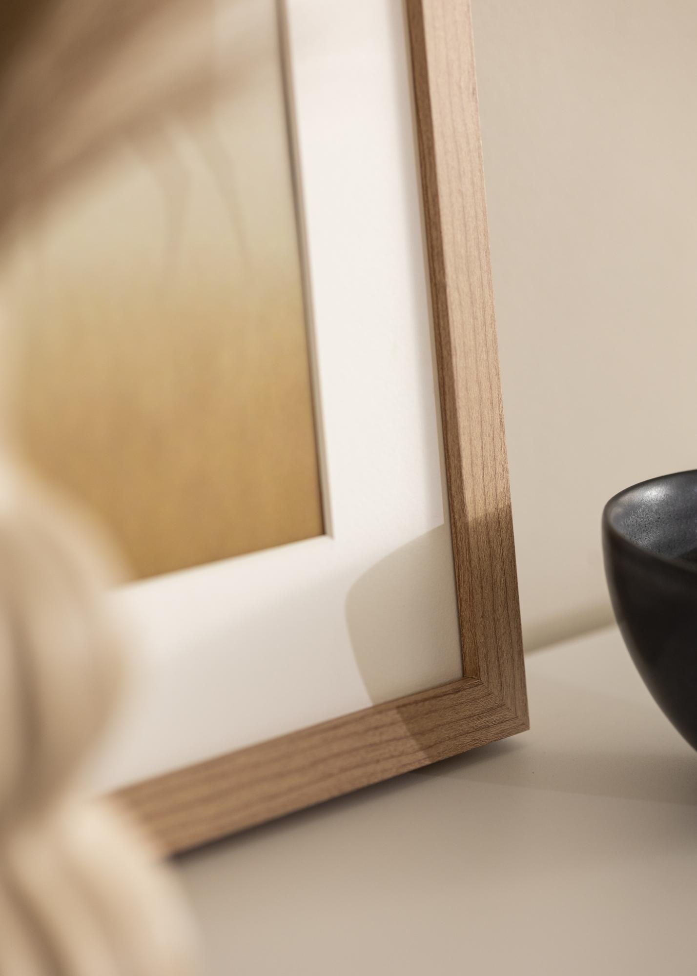 Denne rammen har en dyp list på hele 30 mm. Det gjør at den stikker litt ut fra veggen, noe som gir en mer effektfull innramming. Listen får ekstra karakter takket være den tydelige trestrukturen.