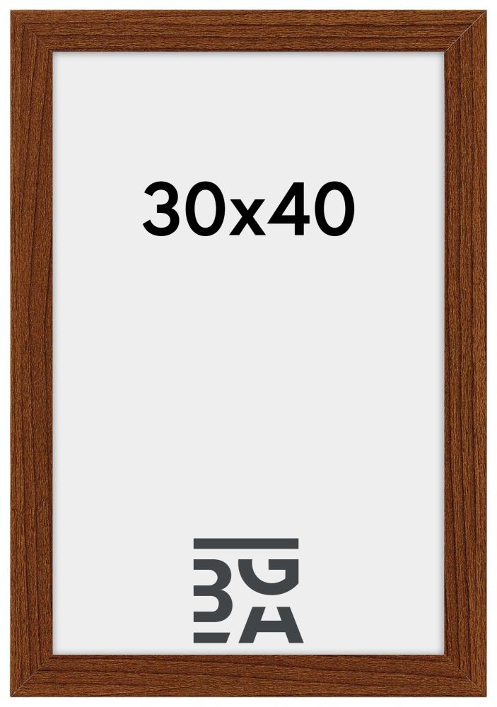 New Stockholm Valnøtt er rammen for deg som vil ha en moderne og stilig fotoramme med trestruktur. Rammen er laget av MDF-materiale med foliert overflate og en vakker matt valnøttfarge. Den naturlige fargen passer til mange ulike typer motiver, som er perfekt hvis du liker å skifte ut plakatene dine med jevne mellomrom! Noe som gjør det enda enklere er at du selv kan velge om du vil bruke bilderammen til stående eller liggende motiver.