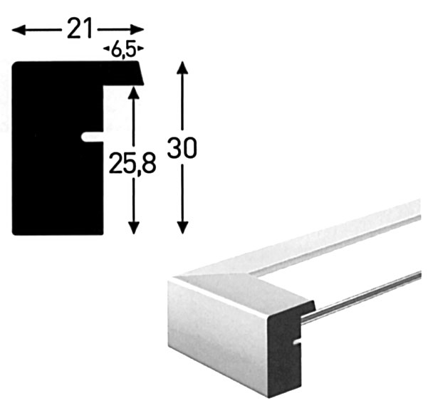 Dette er en stilig hvit bilderamme med klassisk firkantet profil. Rammens 20 mm brede list er lakkert og har en blank finish, noe som gir den et moderne utseende som passer godt til mange ulike motiver. Listen er 30 mm dyp, som betyr at rammen stikker litt ut fra veggen for å skape litt 3D-effekt. Rammen har en innerdybde på hele 25,8 mm. Dette gir god plass til å komplettere rammen med en passepartout - og det følger faktisk med en passepartout til denne rammen!