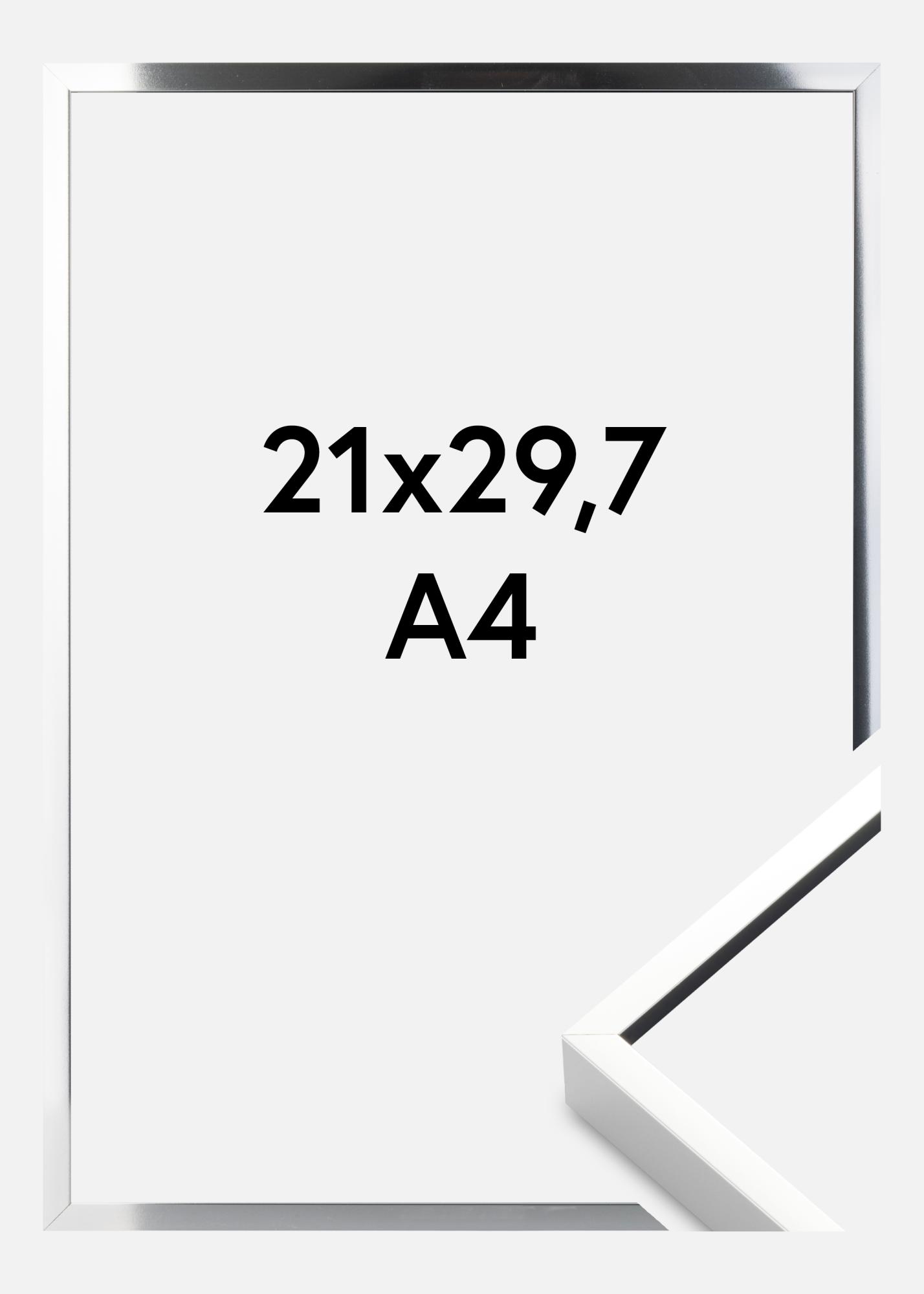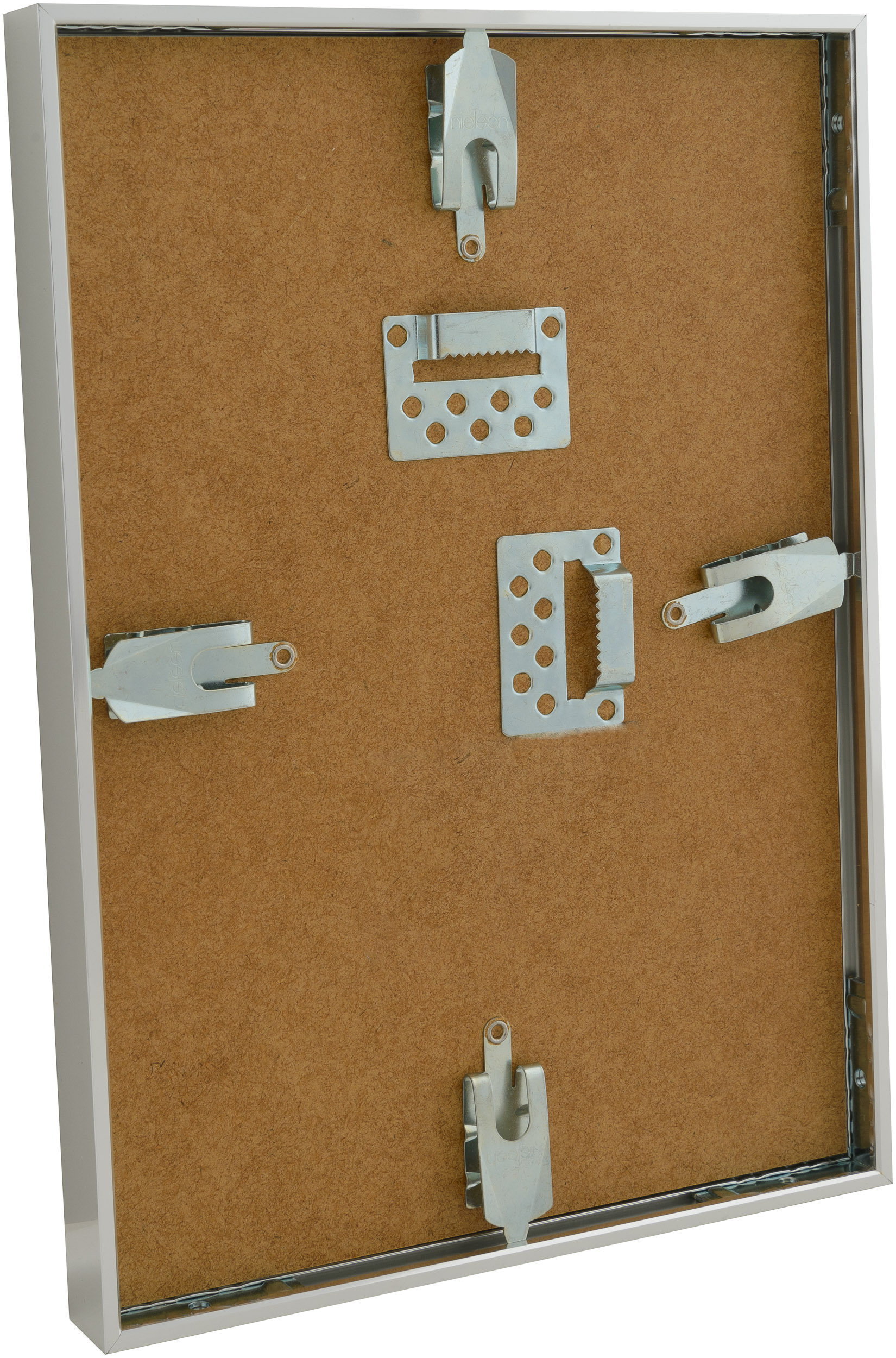Stilren blank sølvfarget bilderamme av høy kvalitet, produsert i Tyskland med en tynn rammelist av aluminium. Det minimalistiske designet på rammen gjør at den passer bra inn i hjemmet, med en nedtonet innredningsstil og den diskrete lysegrå sølvfargen passer like bra til å ramme inn fotografier som plakater. Det store utvalget av størrelser gjør at rammen er perfekt å bruke til en bildecollage der samlingen av bilder holdes sammen gjennom valget av ramme.