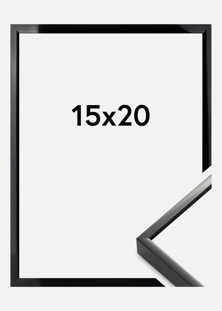 Elegant premium-ramme med en høyblank tynn svart rammelist som passer perfekt inn i et moderne stilrent interiør. Overflaten på rammen og den minimalistiske følelsen i den slanke designen gjør at den er fin å bruke til grafiske plakater og svarthvite fotografier. Bilderammen er laget av aluminium og finnes i mange ulike størrelser, hvilket gør at den er et bra alternativ når man vil skape en bildevegg med bilder i flere ulike format som holdes sammen av ramme valget.