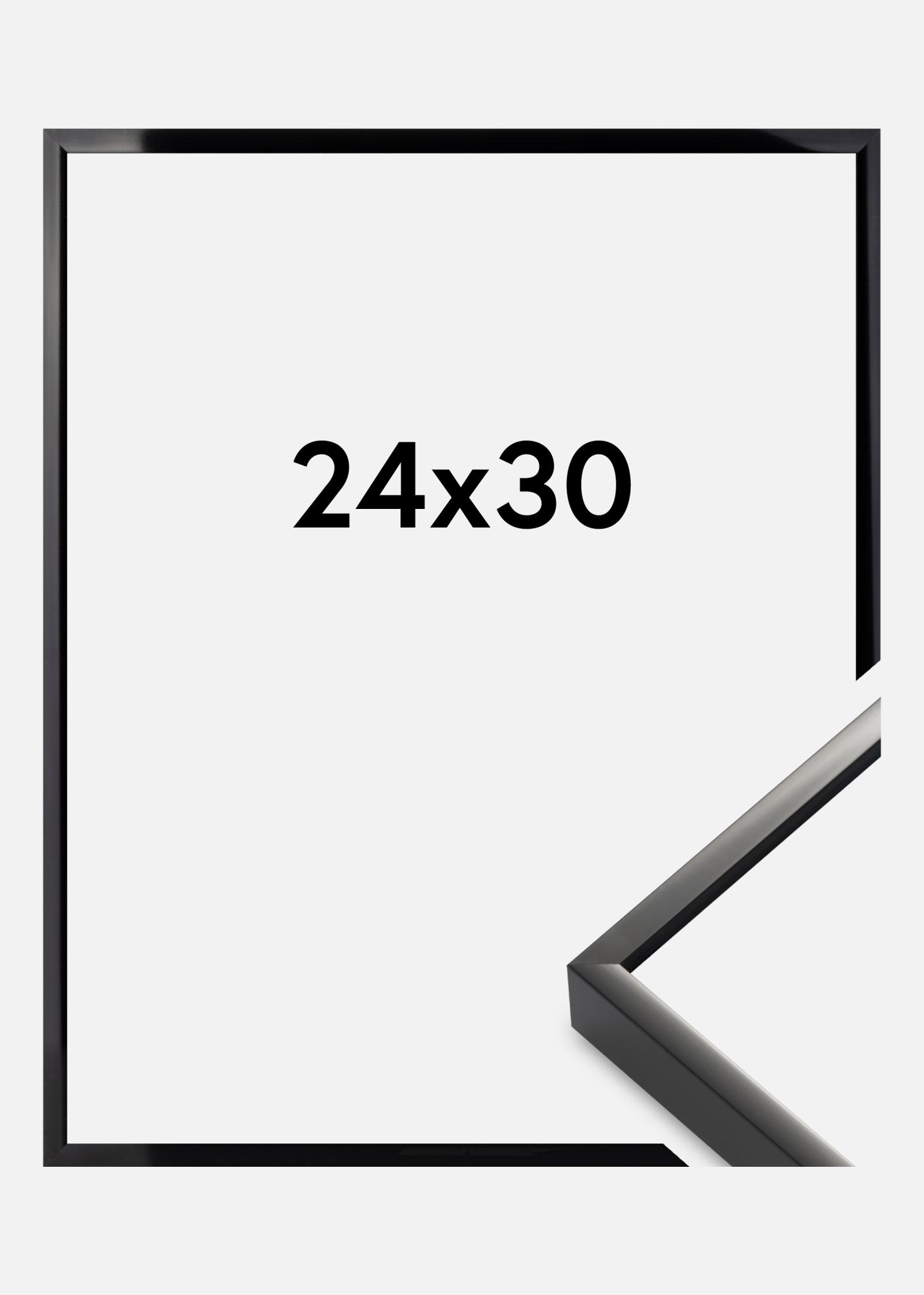 Elegant premium-ramme med en høyblank tynn svart rammelist som passer perfekt inn i et moderne stilrent interiør. Overflaten på rammen og den minimalistiske følelsen i den slanke designen gjør at den er fin å bruke til grafiske plakater og svarthvite fotografier. Bilderammen er laget av aluminium og finnes i mange ulike størrelser, hvilket gør at den er et bra alternativ når man vil skape en bildevegg med bilder i flere ulike format som holdes sammen av ramme valget.
