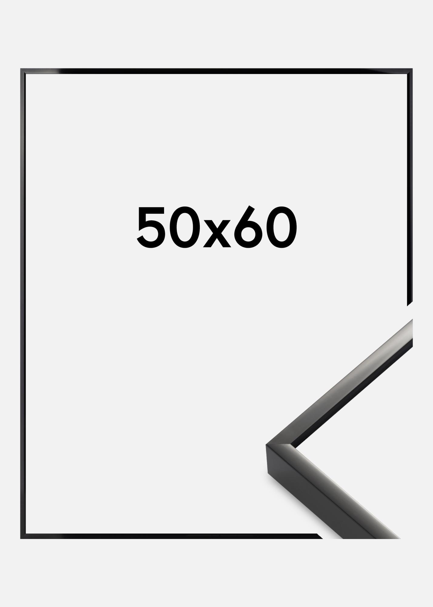 Elegant premium-ramme med en høyblank tynn svart rammelist som passer perfekt inn i et moderne stilrent interiør. Overflaten på rammen og den minimalistiske følelsen i den slanke designen gjør at den er fin å bruke til grafiske plakater og svarthvite fotografier. Bilderammen er laget av aluminium og finnes i mange ulike størrelser, hvilket gør at den er et bra alternativ når man vil skape en bildevegg med bilder i flere ulike format som holdes sammen av ramme valget.