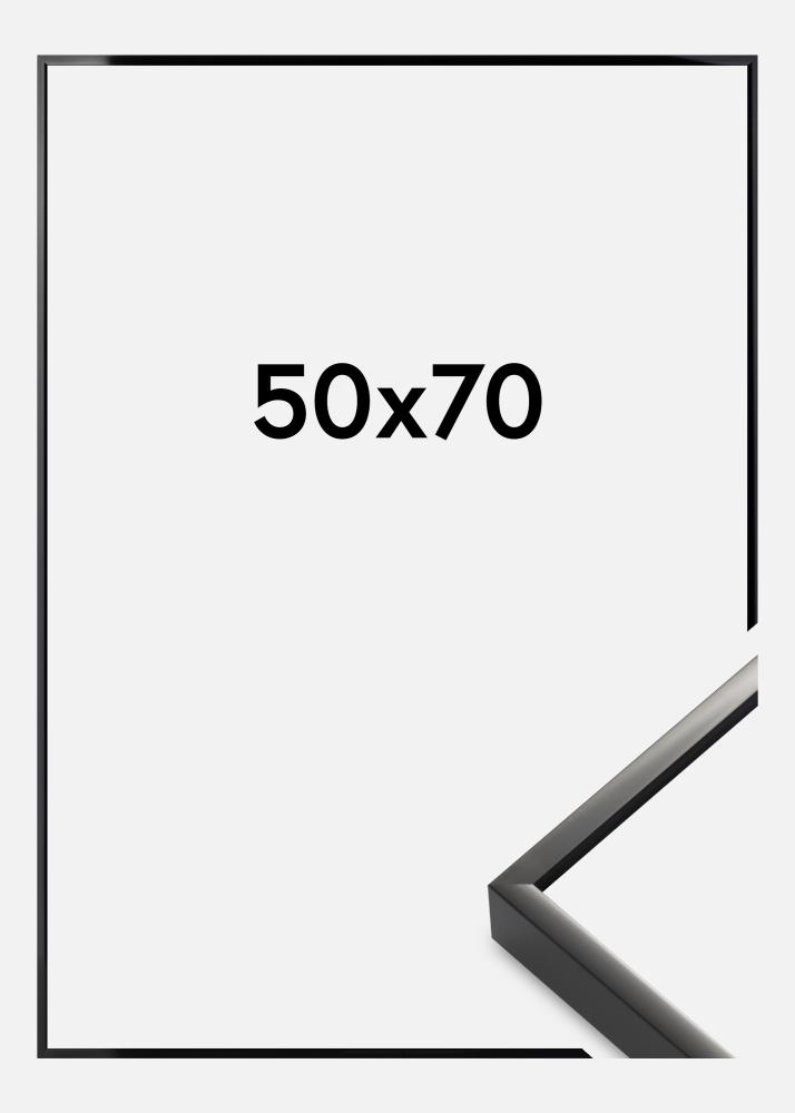 Elegant premium-ramme med en høyblank tynn svart rammelist som passer perfekt inn i et moderne stilrent interiør. Overflaten på rammen og den minimalistiske følelsen i den slanke designen gjør at den er fin å bruke til grafiske plakater og svarthvite fotografier. Bilderammen er laget av aluminium og finnes i mange ulike størrelser, hvilket gør at den er et bra alternativ når man vil skape en bildevegg med bilder i flere ulike format som holdes sammen av ramme valget.
