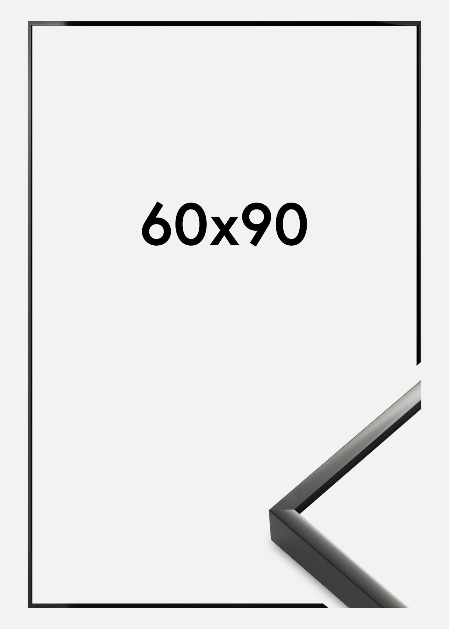 Elegant premium-ramme med en høyblank tynn svart rammelist som passer perfekt inn i et moderne stilrent interiør. Overflaten på rammen og den minimalistiske følelsen i den slanke designen gjør at den er fin å bruke til grafiske plakater og svarthvite fotografier. Bilderammen er laget av aluminium og finnes i mange ulike størrelser, hvilket gør at den er et bra alternativ når man vil skape en bildevegg med bilder i flere ulike format som holdes sammen av ramme valget.