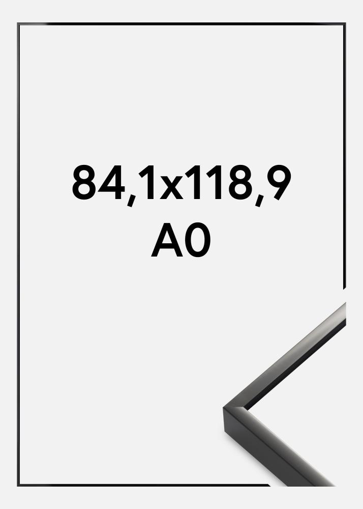 Elegant premium-ramme med en høyblank tynn svart rammelist som passer perfekt inn i et moderne stilrent interiør. Overflaten på rammen og den minimalistiske følelsen i den slanke designen gjør at den er fin å bruke til grafiske plakater og svarthvite fotografier. Bilderammen er laget av aluminium og finnes i mange ulike størrelser, hvilket gør at den er et bra alternativ når man vil skape en bildevegg med bilder i flere ulike format som holdes sammen av ramme valget.