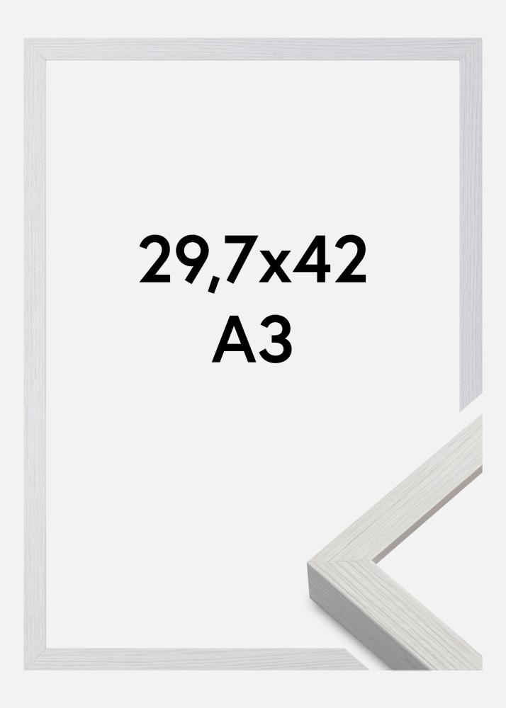 Stilren hvit treramme med høy kvalitet og en beiset overflate der trestrukturen kommer frem. Den smale rammelisten gjør seg like bra i en moderne innredningsstil som i et landlig interiør, der den beisede hvite fargen passer inn. Rammen er fin å bruke til både plakater, akvareller og fotografier og den finnes i mange ulike størrelser. Kombiner rammen sammen med flere fotografier i ulike format for å skape en fin bildevegg som blir et blikkfang på veggen.