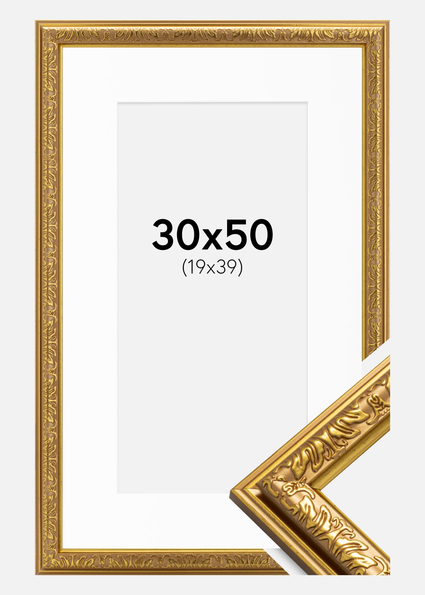 Ramme Nostalgia Gull 30x50 cm - Passepartout Hvit 20x40 cm