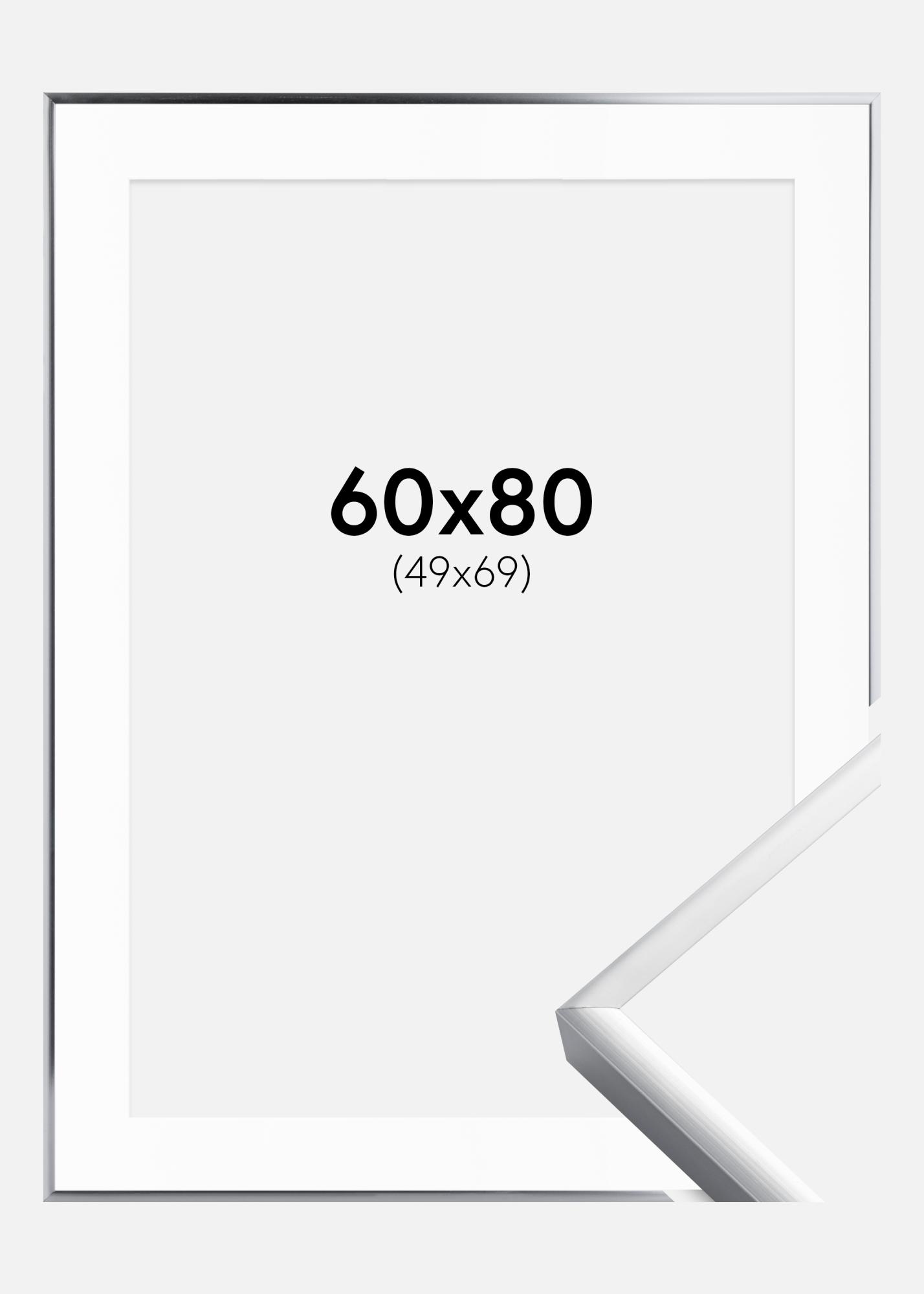 Ramme Poster Frame Aluminum Sølv 60x80 cm - Passepartout Hvit 50x70 cm