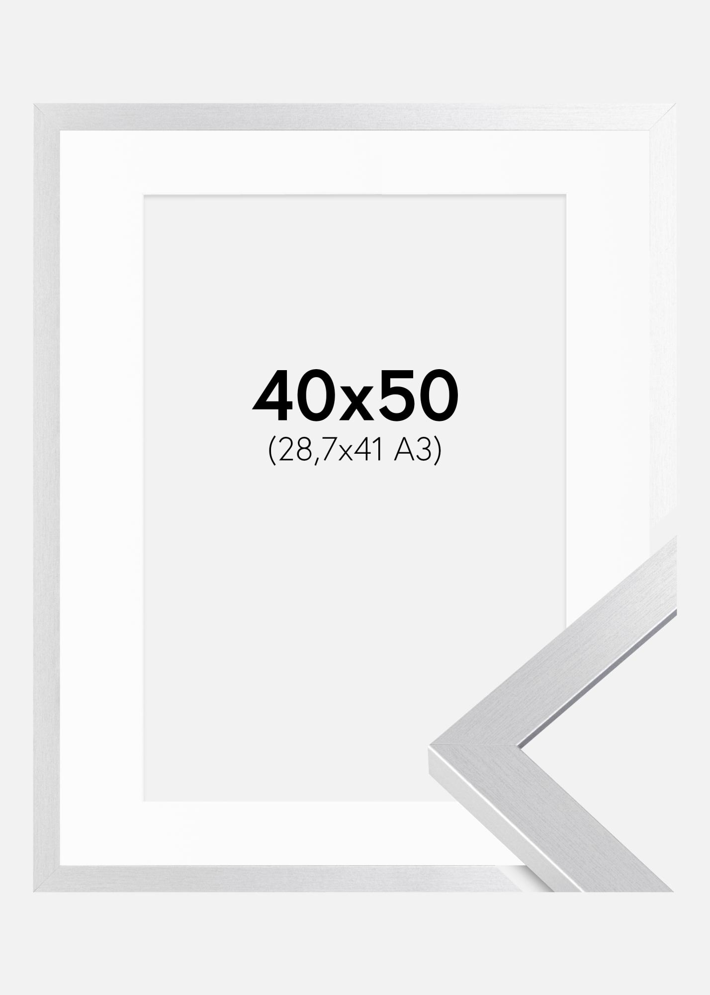 Ramme Selection Sølv 40x50 cm - Passepartout Hvit 29,7x42 cm (A3)