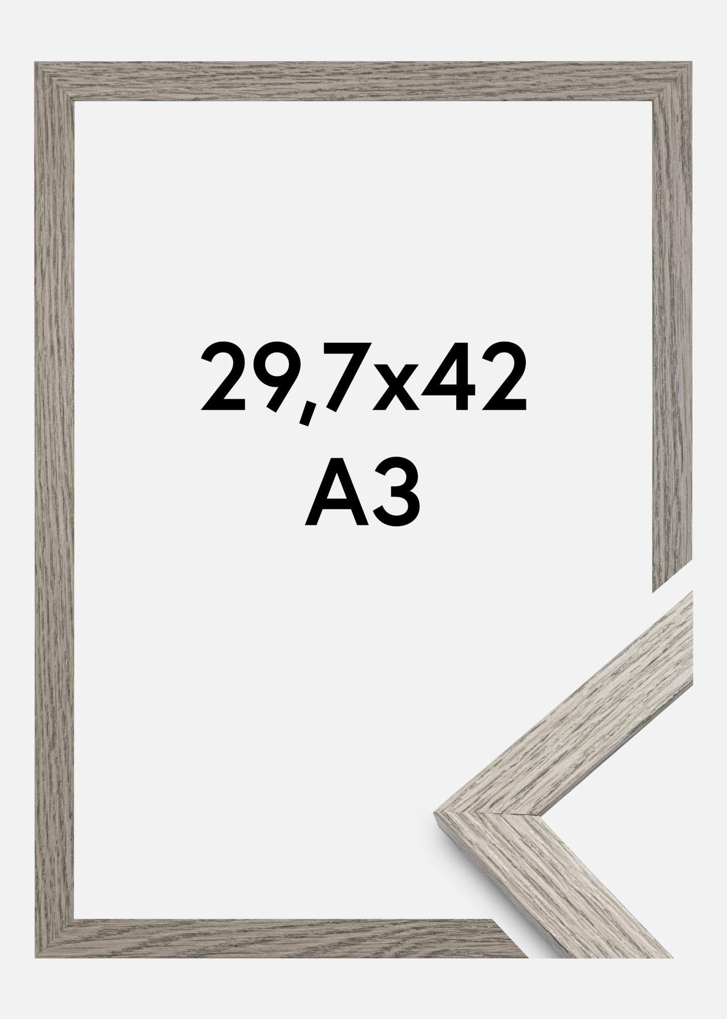 Stilren Grey Oak er en moderne treramme laget av furu. Denne bilde rammen har en svært stilig eikefarget grå farge. Rammen måler 20 mm i bredde og 14 mm i dybde. På baksiden av rammen er det tilhørende veggfester for både stående og liggende oppheng. I denne fine rammen kan du velge å ramme inn et sort-hvitt foto som går ton-i-ton med ramlistens eksklusive grå nyanse, eller velg et fargerikt motiv for å elegant bryte av. Stilren Grey Oak er tilgjengelig i flere forskjellige størrelser og fargenyanser som elegant kan matches med hverandre. Denne passer for bilder i A3 størrelse (29,7x42 cm).