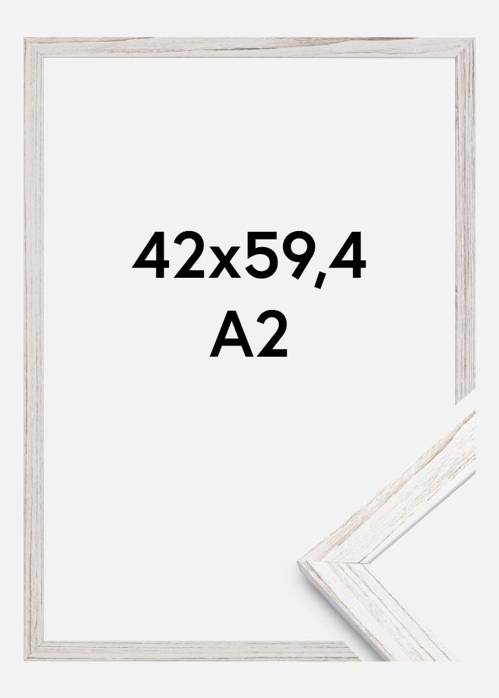 Dette er en ramme i vintage design. Rammen har en hvit nyanse med brunspettete innslag som gir denne rammen en litt mer rustikk følelse. Ramlistene måler 20 mm i bredde og 14 mm i dybde. Rammen er laget av furu og har ekte glass. Vintage White er tilgjengelig i mange forskjellige størrelser som du pent kan matche med hverandre. Denne bildeframmen måler 42x59,4 cm og passer til motiver i A2 størrelse.