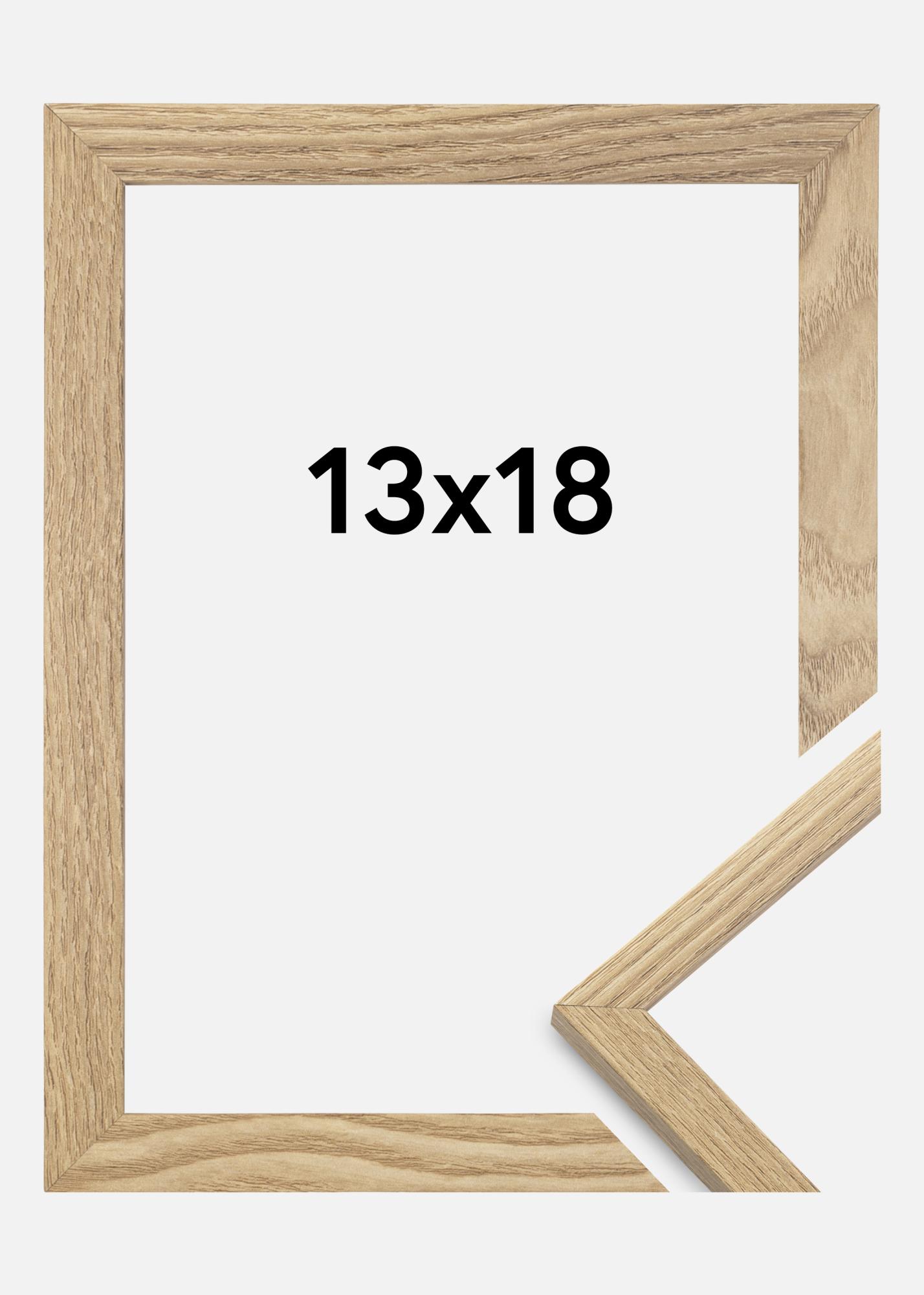Denne bilderammen er laget av MDF-materiale, og har en stilig eiketre-farget overflate og ekte glass. Den tynne rammelisten på bare 14 mm gir et elegant inntrykk. Baksiden holdes på plass av bøyelige stifter, og er lett å løsne når du skal sette inn bildene dine.