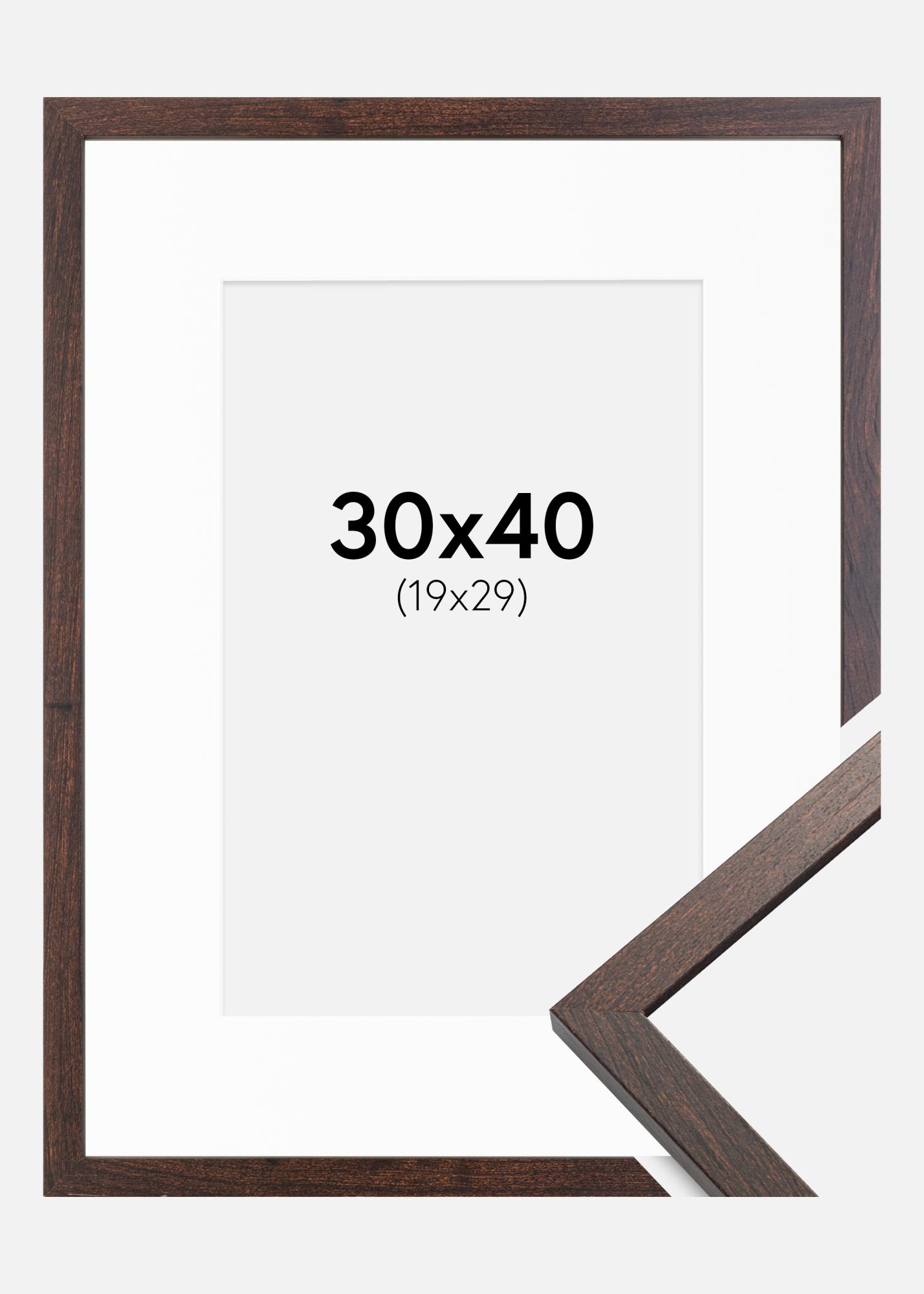 Ramme Trendy Valnøtt 30x40 cm - Passepartout Hvit 20x30 cm