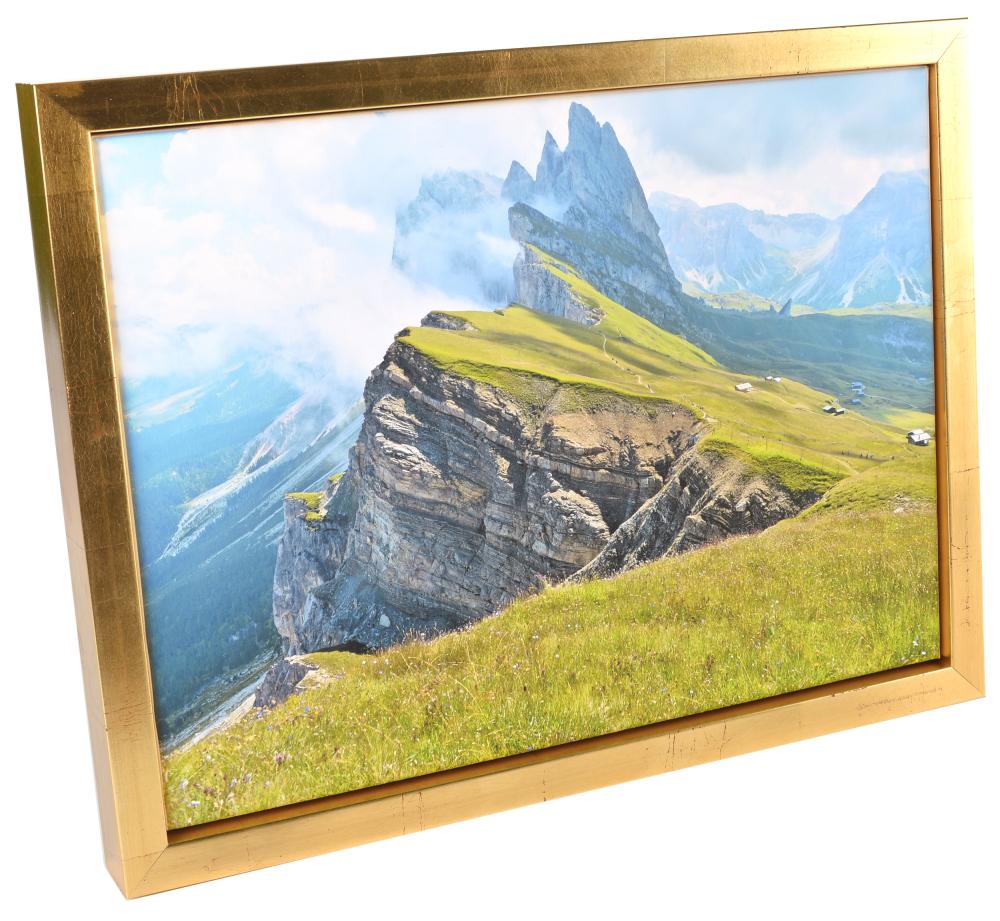 Vesterås er en skyggeramme som passer utmerket til objekter slik som lerret med en dybde på 20-27 mm. Med sin gullfargede profil gir "Västerås" en elegant og lysende følelse til bildet ditt.