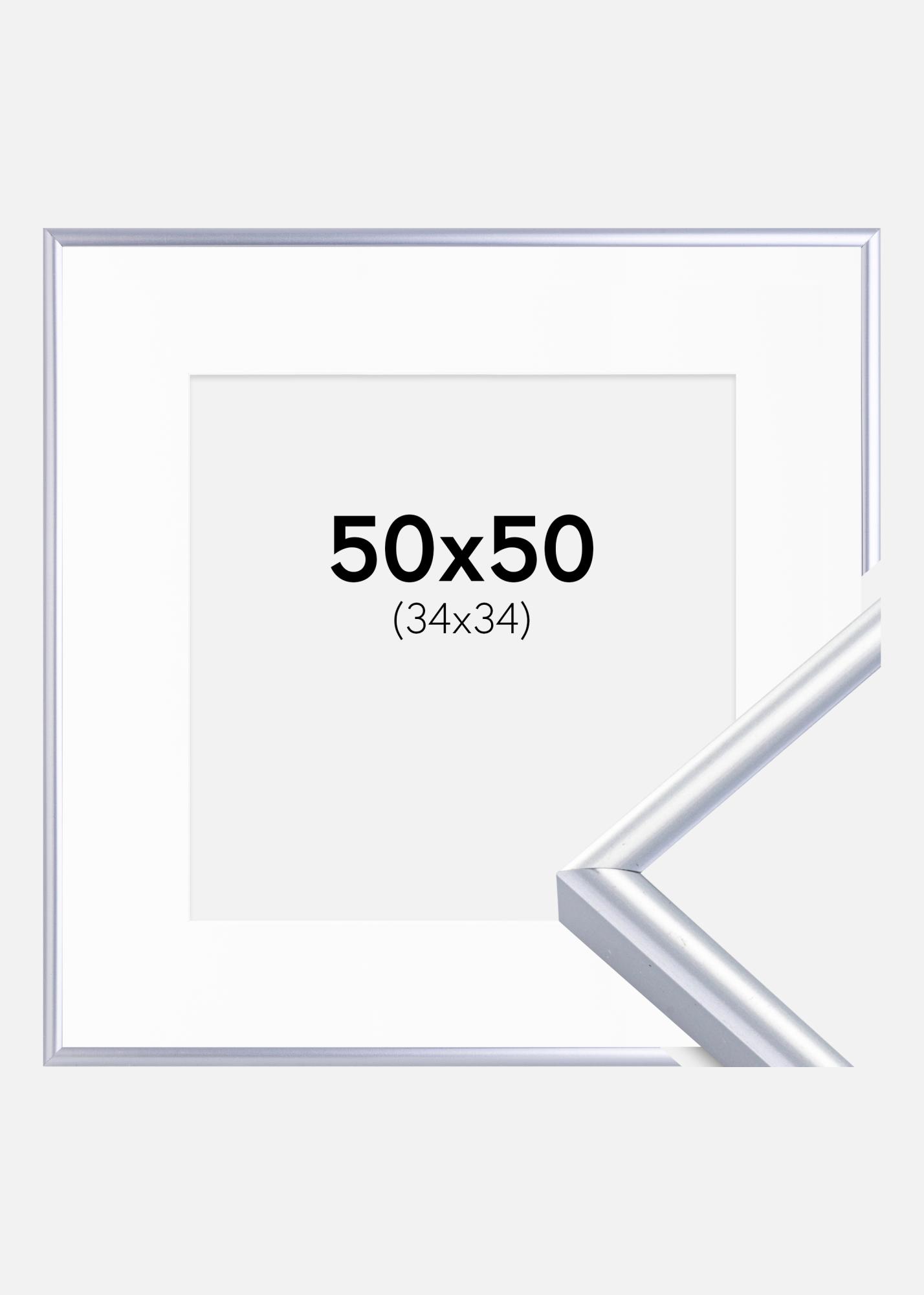 Ramme Victoria Sølv 50x50 cm - Passepartout Hvit 35x35 cm