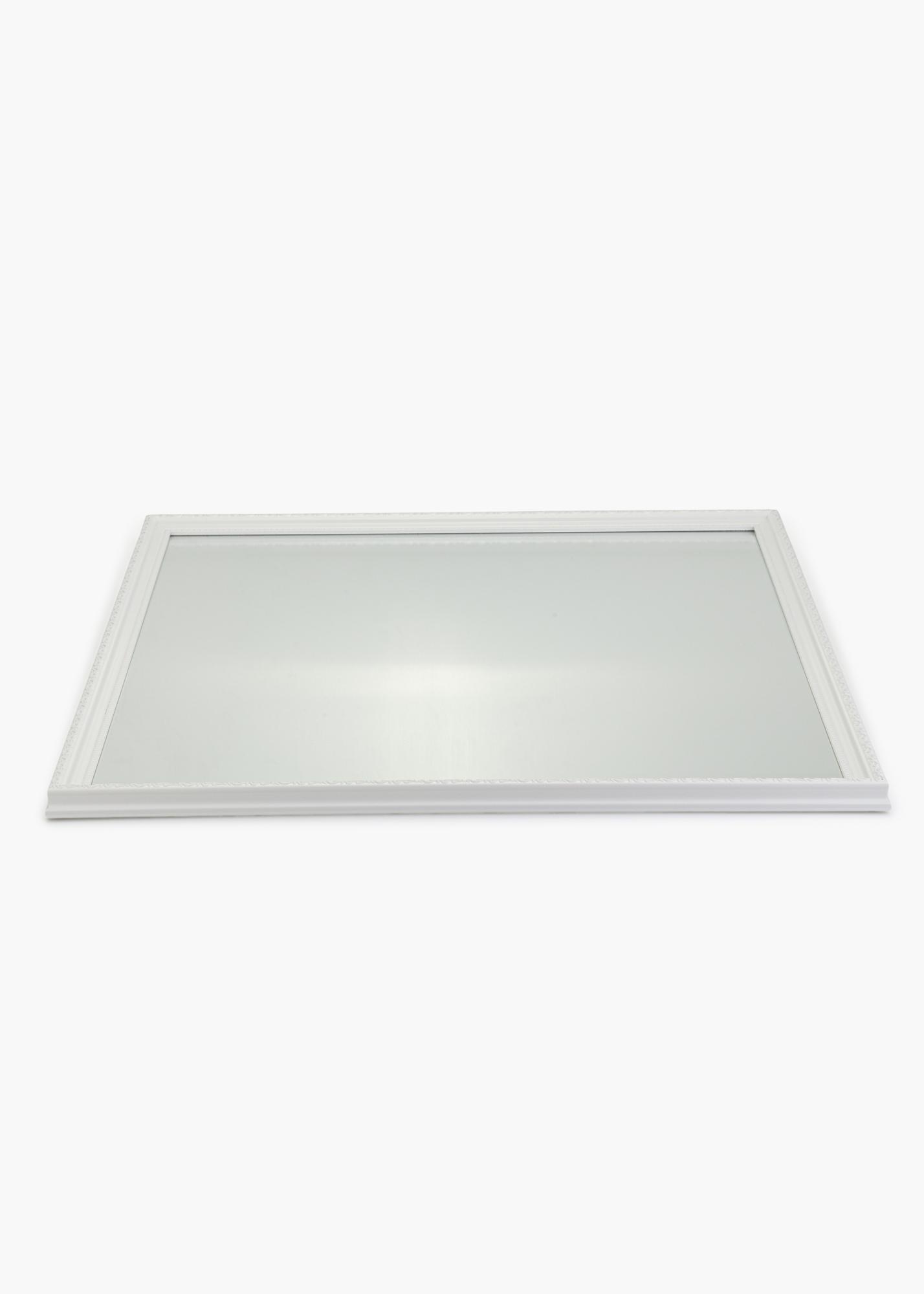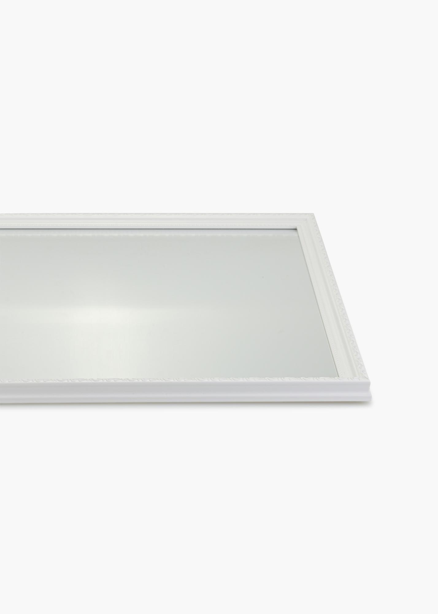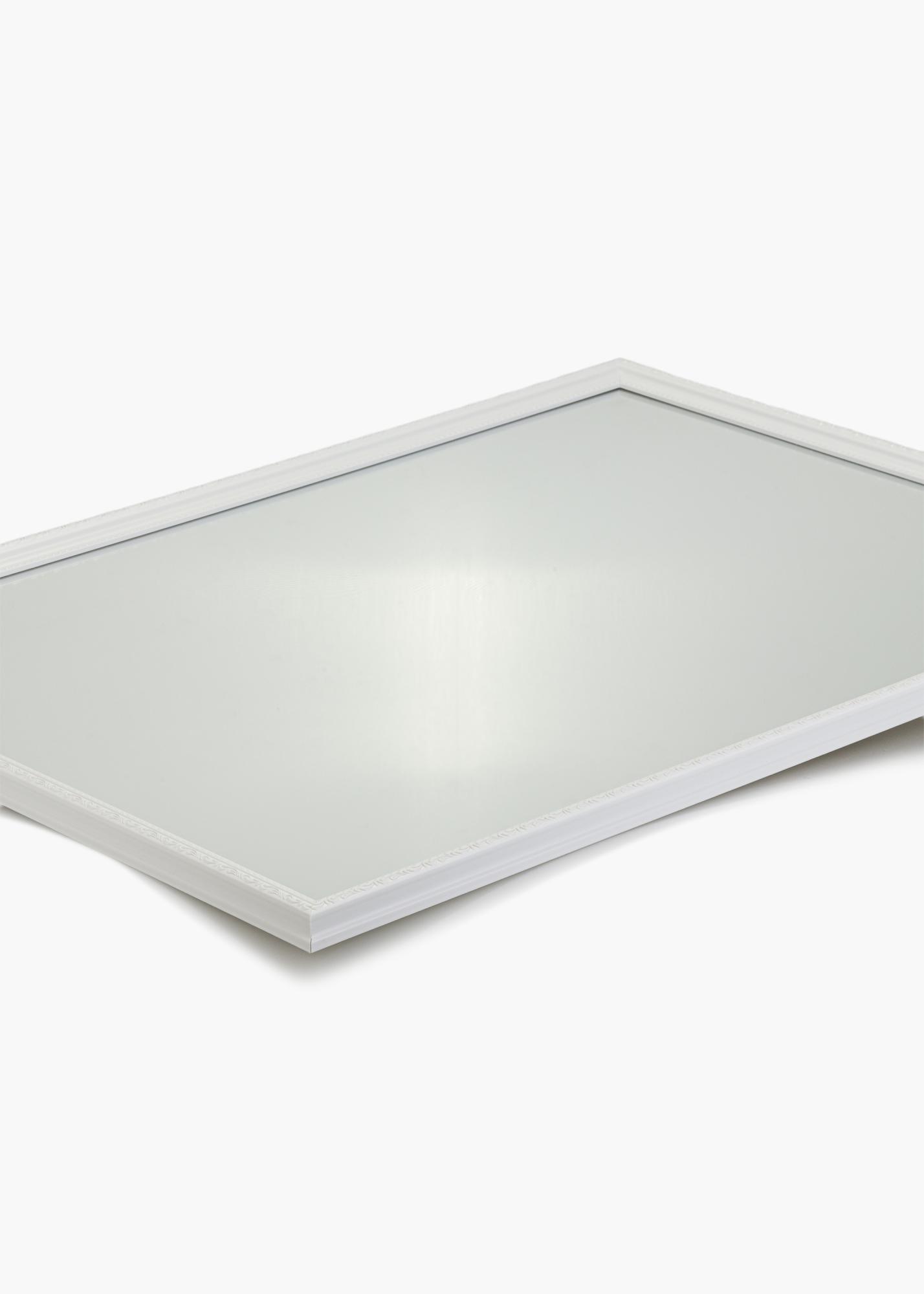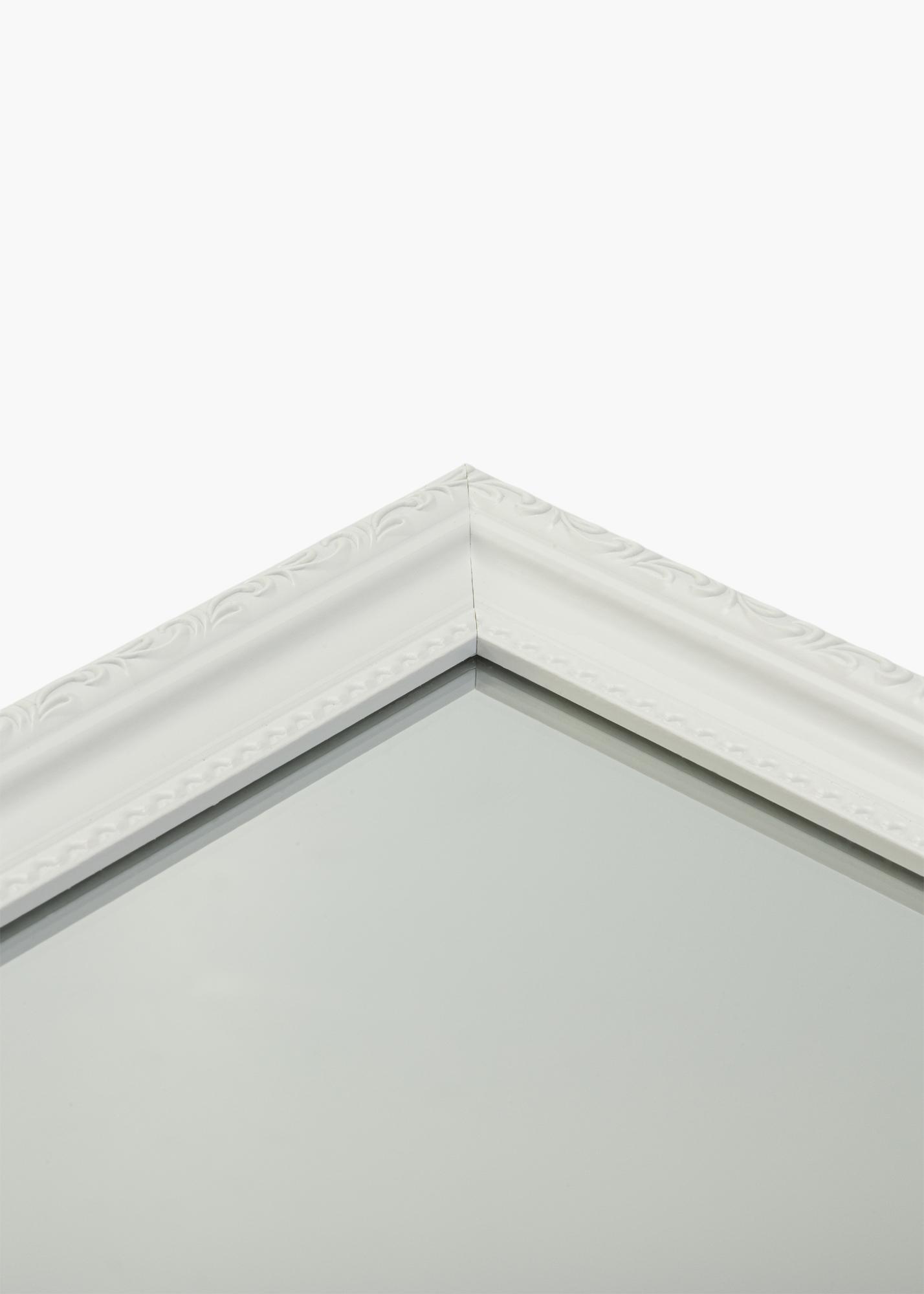 Et hvitt speil blir en frisk detalj i ethvert hjem, og denne modellen gjør det også mer elegant! Speilet er laget av kompositt og har tradisjonelt ufarget speilglass. Den 25 mm brede rammen har en vakker mønstret profil, som gir et veldig stilig inntrykk.