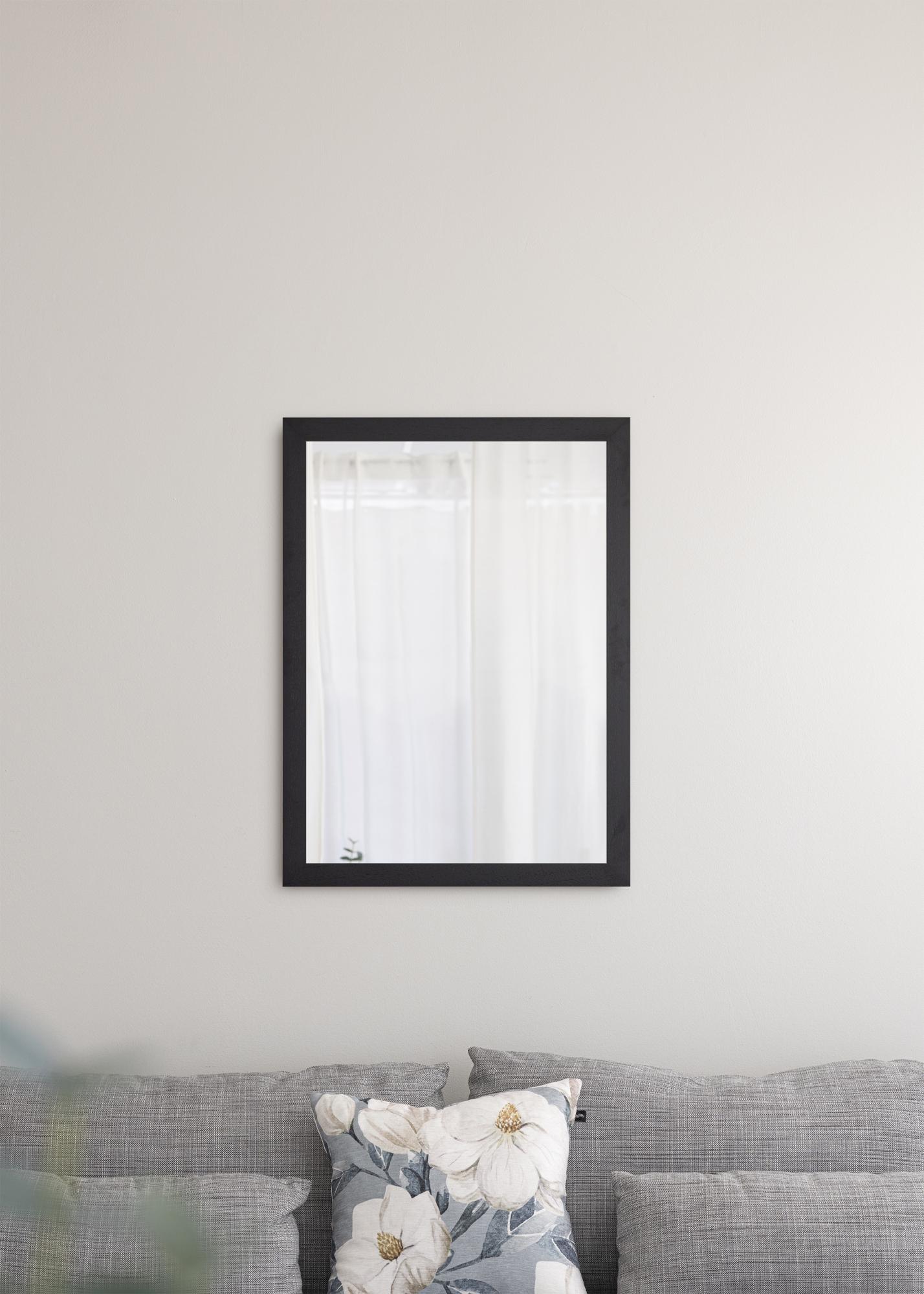 Dette veggspeilet fra Mavanti er en stilren, minimalistisk interiørdetalj som passer utmerket i hjem med både moderne og tradisjonell innredning. Speilet har en 39 mm bred svartmalt treramme, noe som gir det et moderne uttrykk. Gjennom å henge opp et speil kan du få rommet du plasserer det i til å se større ut, samtidig som det tar seg pent ut på veggen. Dette speilet er en del av en serie veggspeil i forskjellige størrelser, og denne varianten måler 57x77 cm.