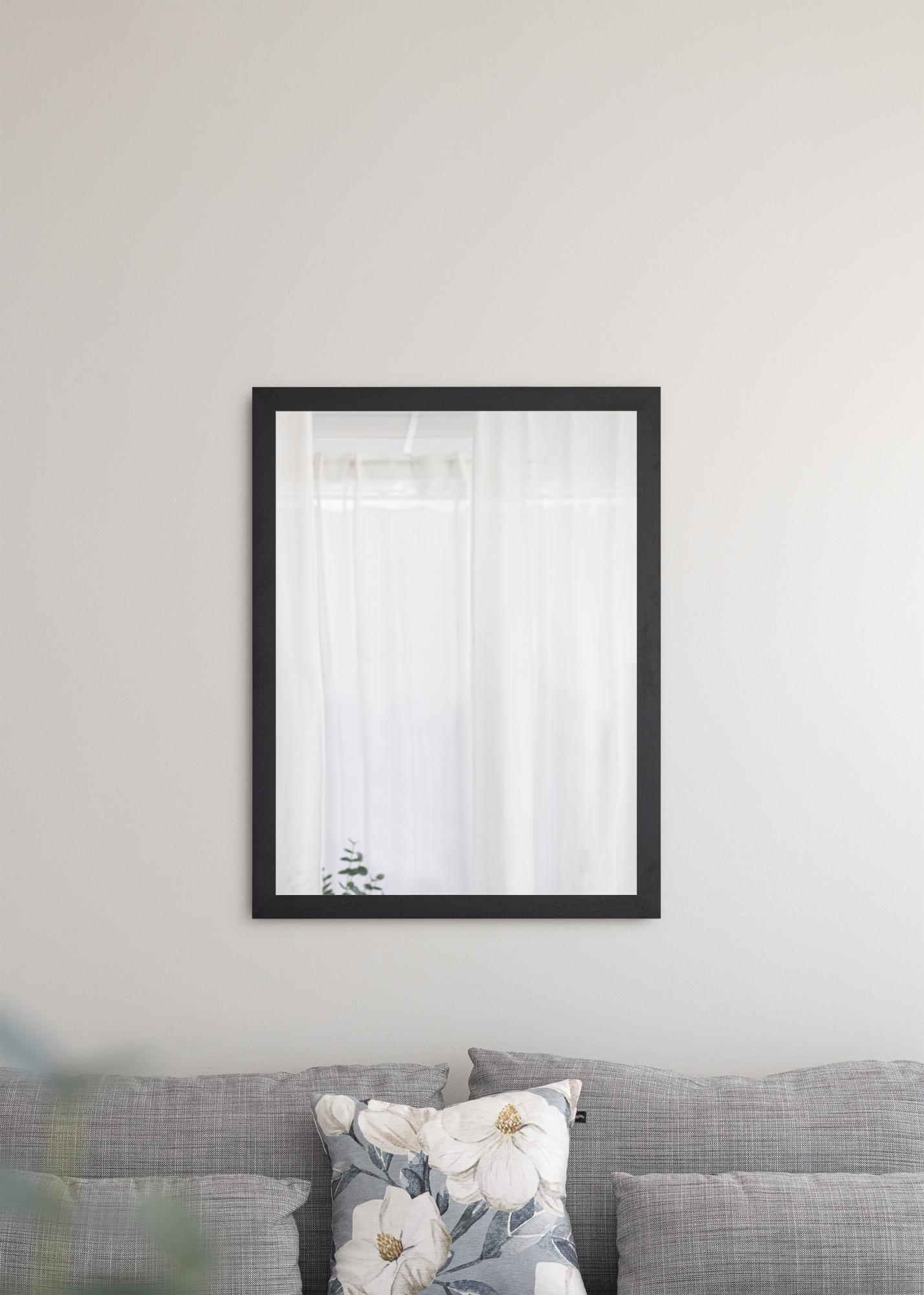Dette veggspeilet fra Mavanti er en stilren, minimalistisk interiørdetalj som passer utmerket i hjem med både moderne og tradisjonell innredning. Speilet har en 39 mm bred svartmalt treramme, noe som gir det et moderne uttrykk. Gjennom å henge opp et speil kan du få rommet du plasserer det i til å se større ut, samtidig som det tar seg pent ut på veggen. Dette speilet er en del av en serie veggspeil i forskjellige størrelser, og denne varianten måler 67x87 cm.