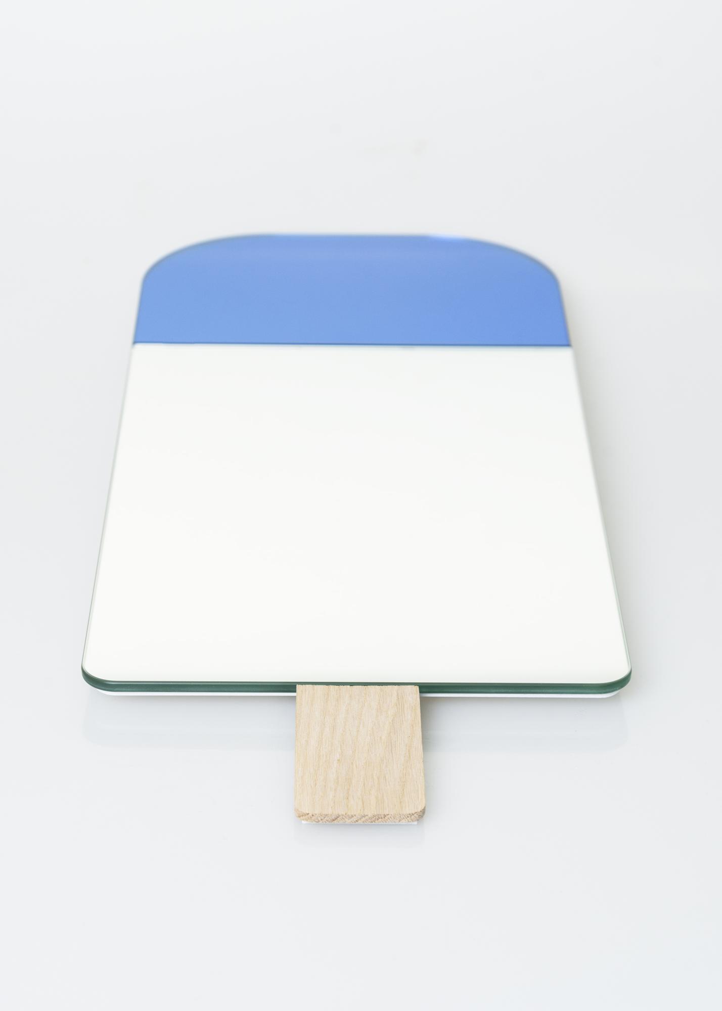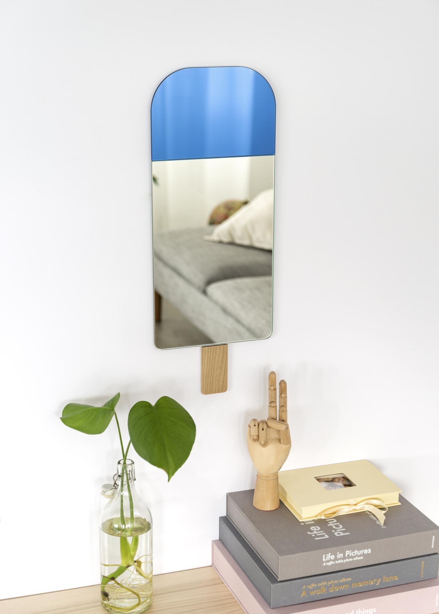 Ice Cream Mirror er formet som en ispinne! Speilets øvre del er farget, som en ispinnes topp, og på bunnen av speilet er det en trepinne i ubehandlet eik.