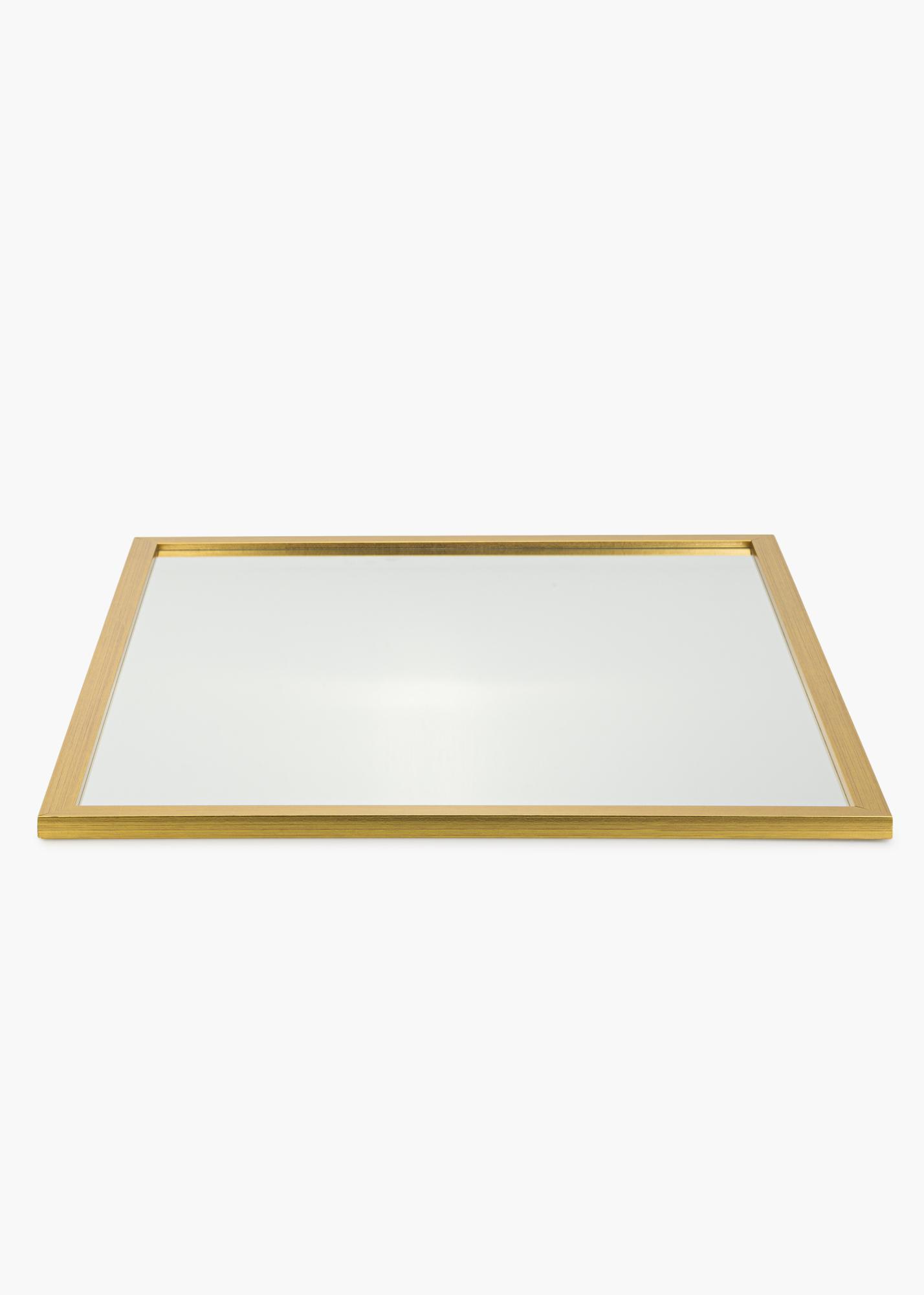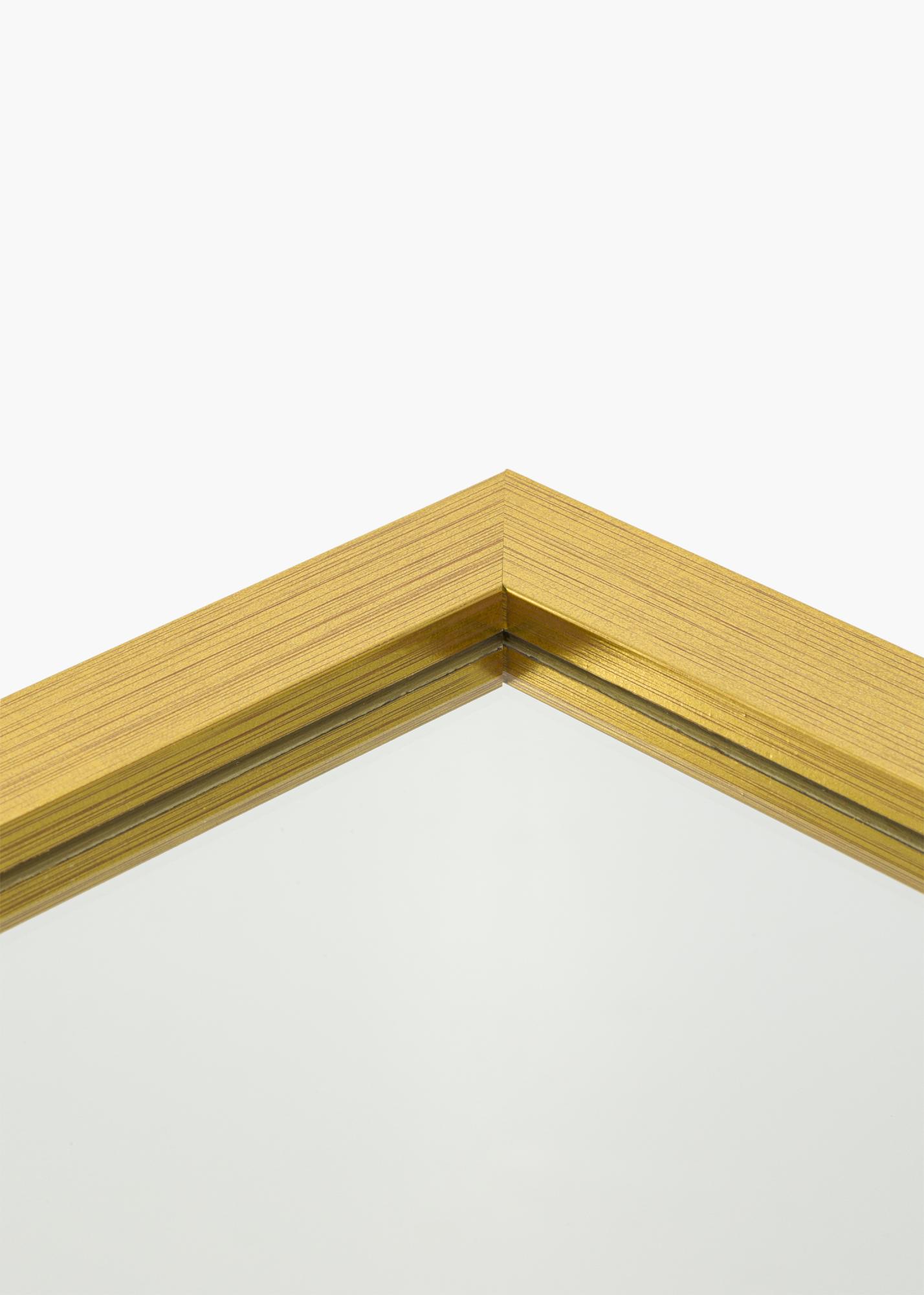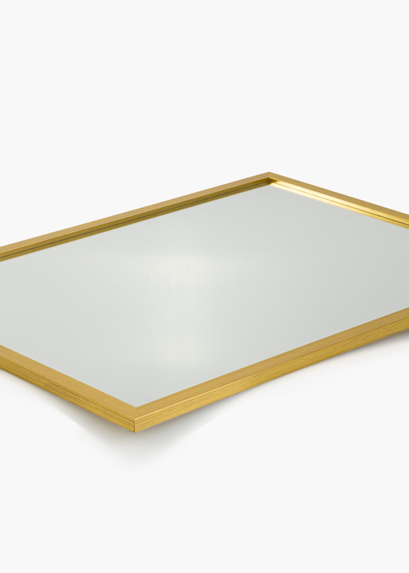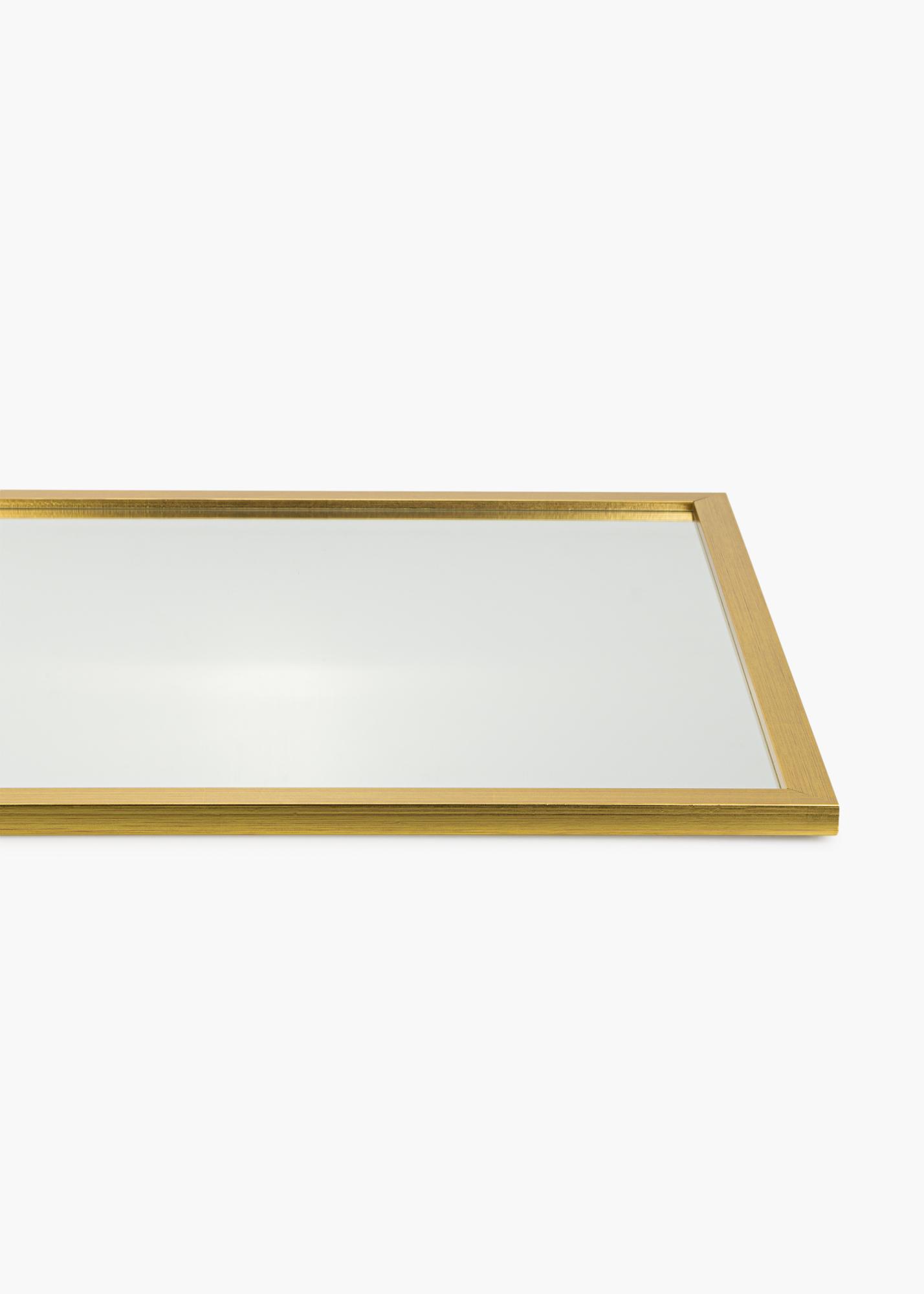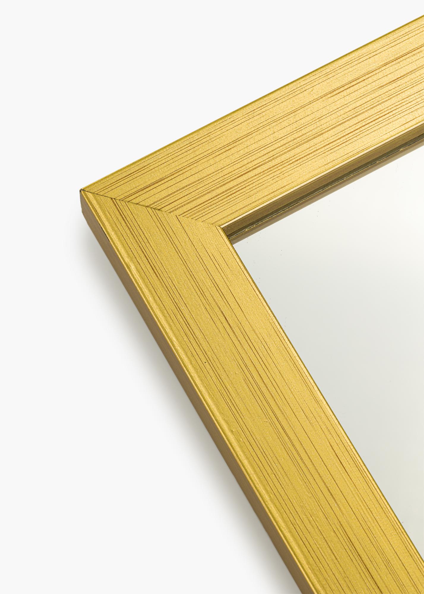 Gold Wood - når enkelhet møter stil! Dette er et veggspeil med en 22 mm bred ramme laget av ayoustre. Rammen har en klassisk rett profil som gir hele speilet en følelse av enkelhet, mens den malte gullfargen tilfører en touch av eleganse.