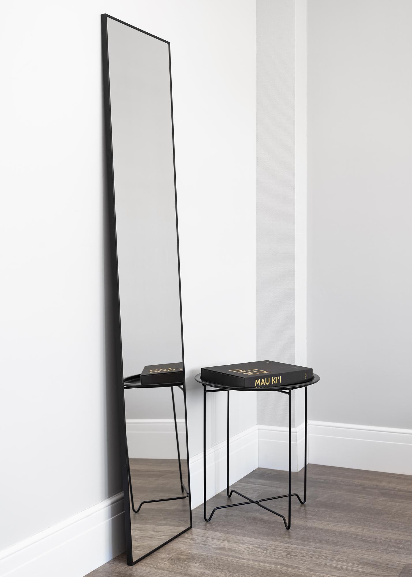 Helkroppspeil med svart aluminiumsramme og en speilflate på hele 40 x 170 cm. Til tross for størrelsen er det enkelt å henge opp på veggen takket være de smarte veggfestene.