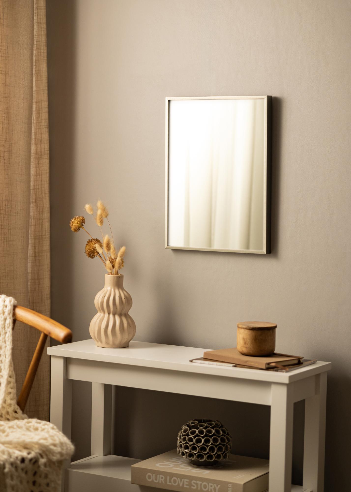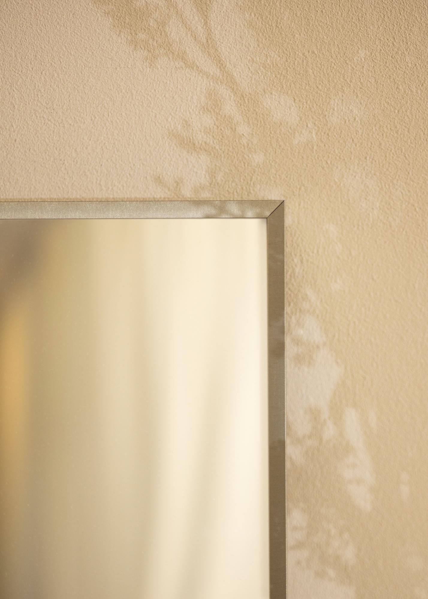 Dette speilet har en vakker sølvfarge som gir et tidløst og sofistikert inntrykk. Rammen er 7,8 mm bred og laget av aluminium, noe som gir speilet en robust og holdbar konstruksjon samtidig som det beholder en lett og smidig følelse. Dybden på 25,9 mm gjør at speilet sitter stødig mot veggen og gir et elegant utseende.