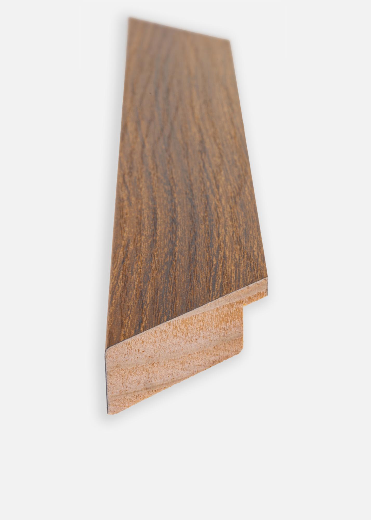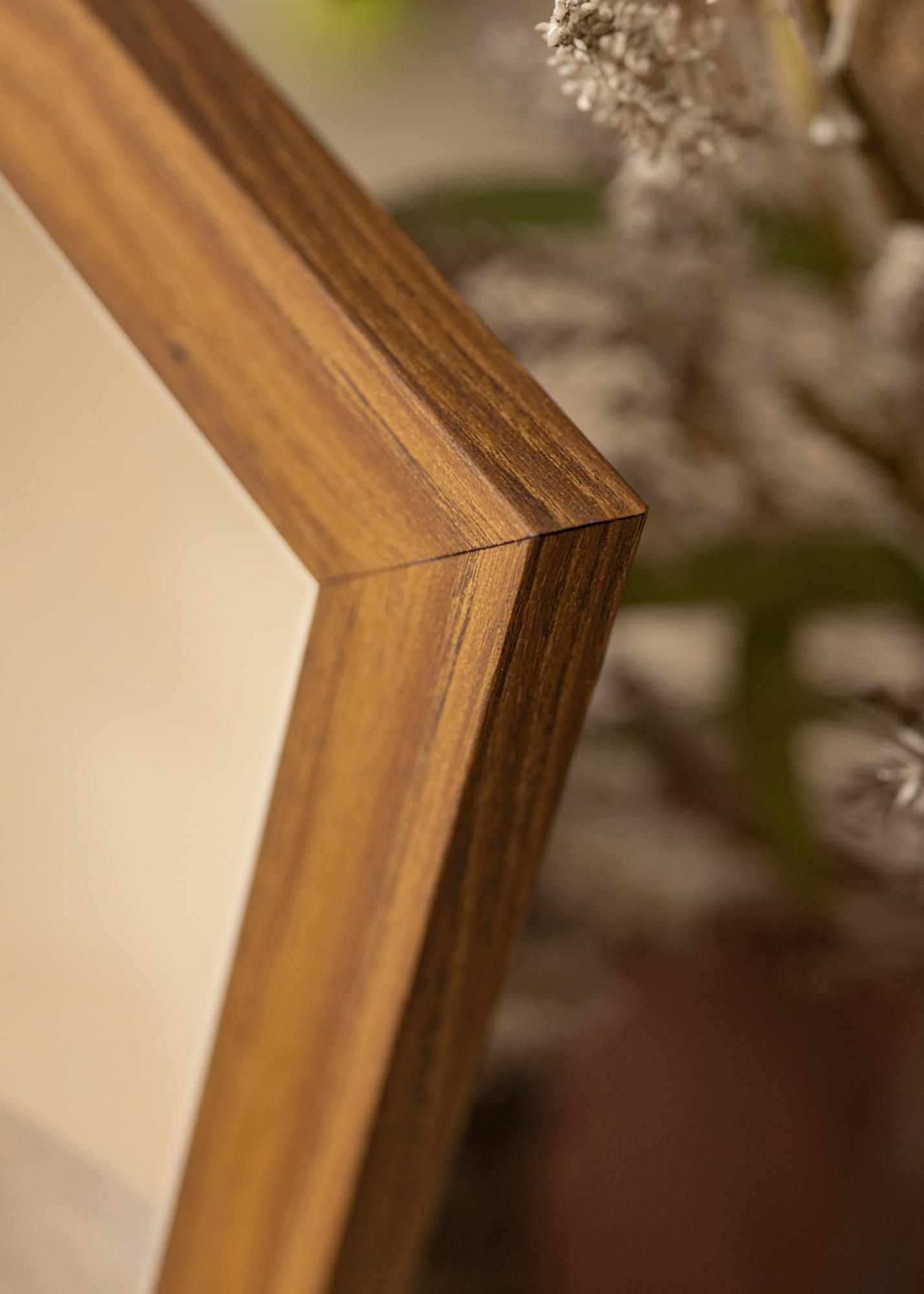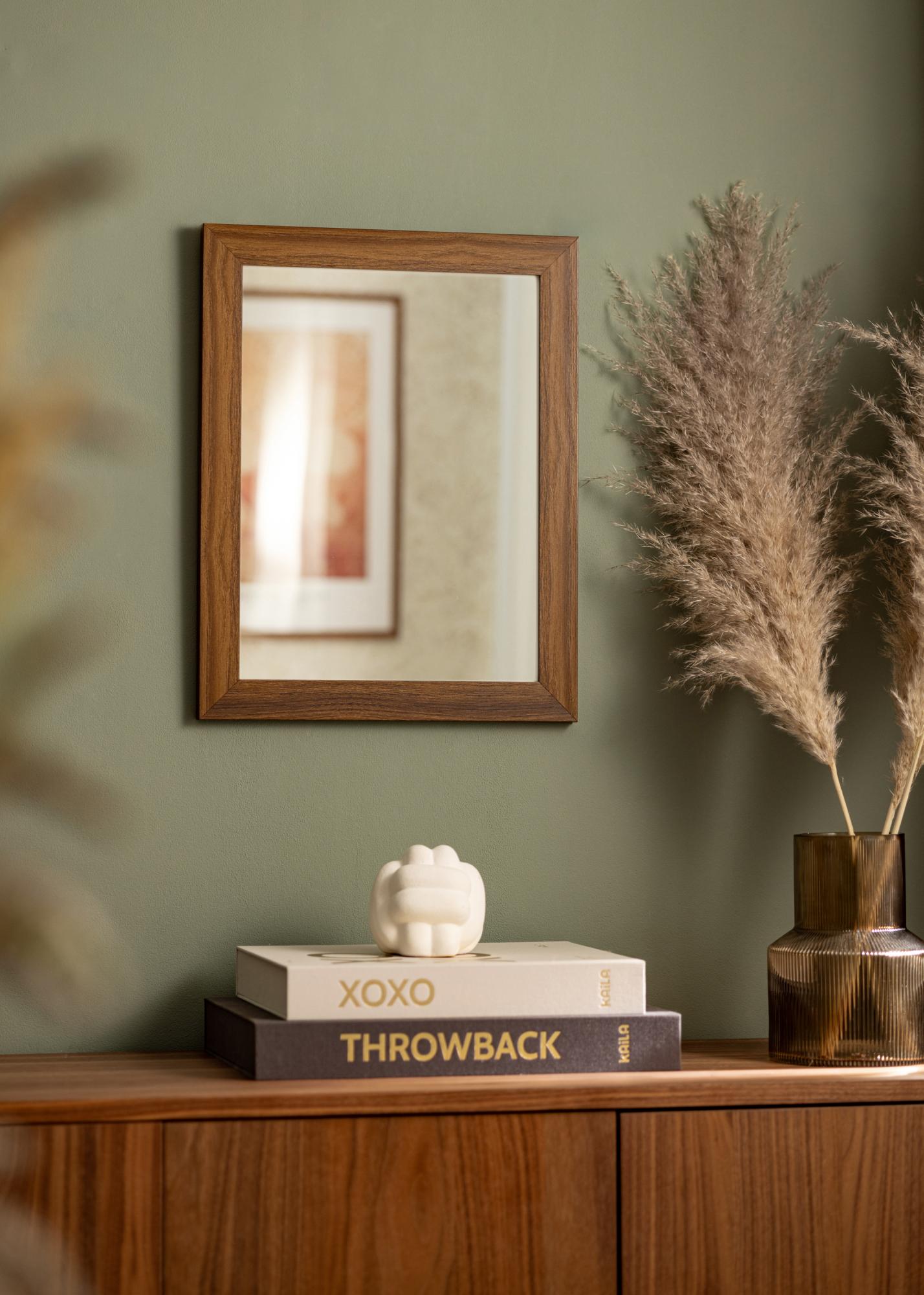 Lakkert, lysebrun treramme av håndsagd furu, med en bred profil på 40 mm. Perfekt dersom du er på jakt etter et vakkert speil med en treramme med bred profil.
