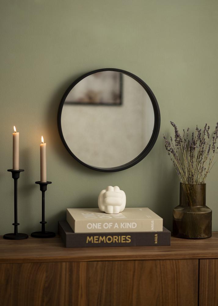 Stilrent sirkelformet svart speil i flere ulike størrelser. Et av våre favorittspeil.