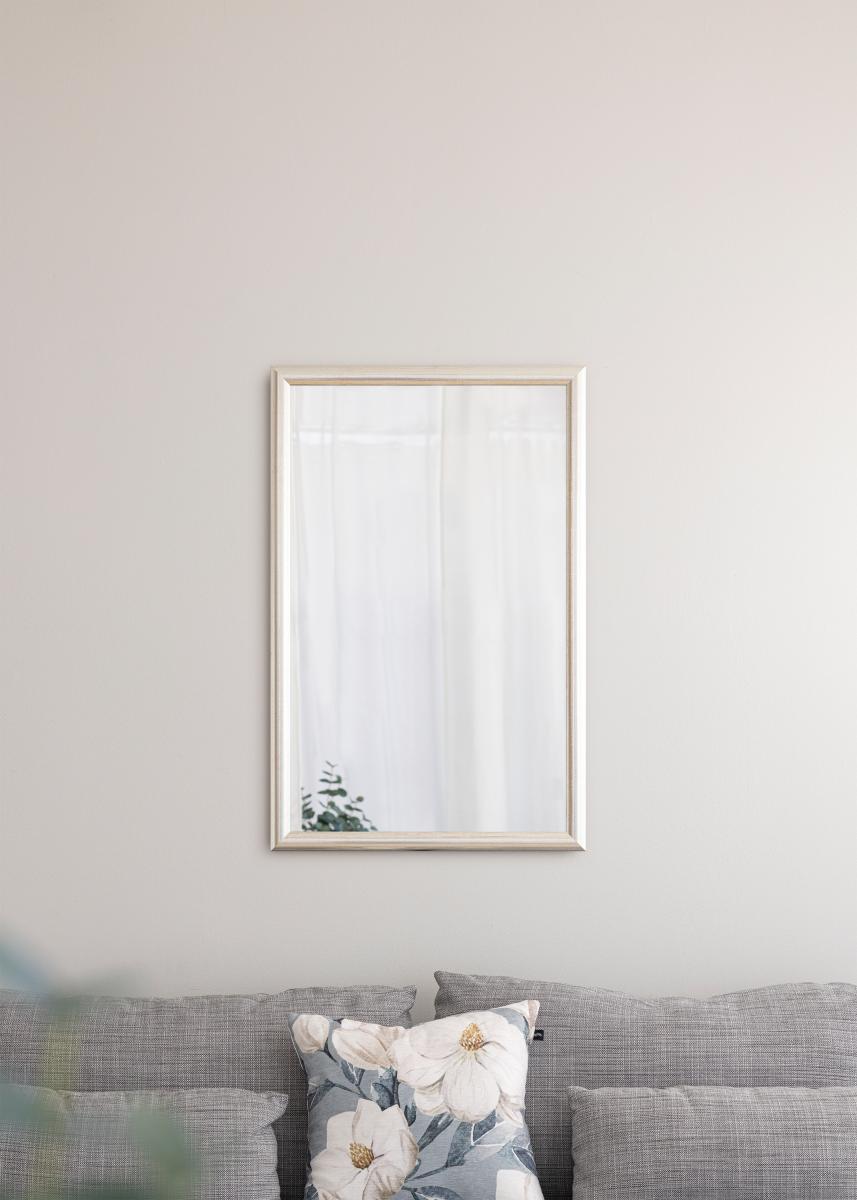 La dette veggspeilet fra Mavanti bli en luksuriøs interiørdetalj i hjemmet ditt. Det passer godt inn i nesten alle rom - så heng det opp i soverommet, entreen eller stuen, og la det reflektere rommets naturlige lys. Et veggspeil kan i noen tilfeller også få rommet til å se større ut. Dette speilet har en 30 mm bred treramme i sølv som gir det et luksuriøst uttrykk.