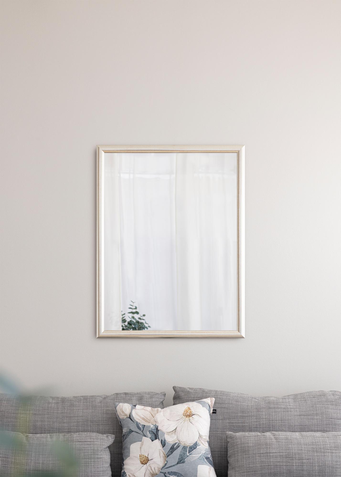 La dette veggspeilet fra Mavanti bli en luksuriøs interiørdetalj i hjemmet ditt. Det passer godt inn i nesten alle rom - så heng det opp i soverommet, entreen eller stuen, og la det reflektere rommets naturlige lys. Et veggspeil kan i noen tilfeller også få rommet til å se større ut. Dette speilet har en 30 mm bred treramme i sølv som gir det et luksuriøst uttrykk.