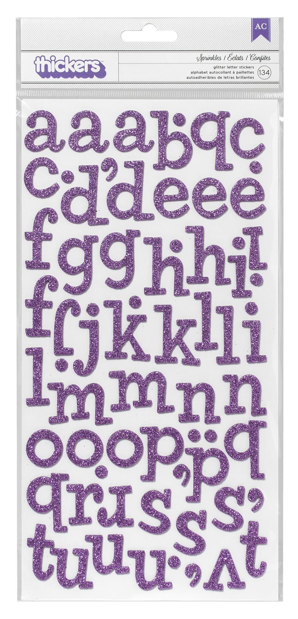 Lilla klistremerker til ditt neste scrapbookingprosjekt? Det tror i hvert fall vi! Klistremerkene har en glitrende overflate og en høyde på 2,5 cm.