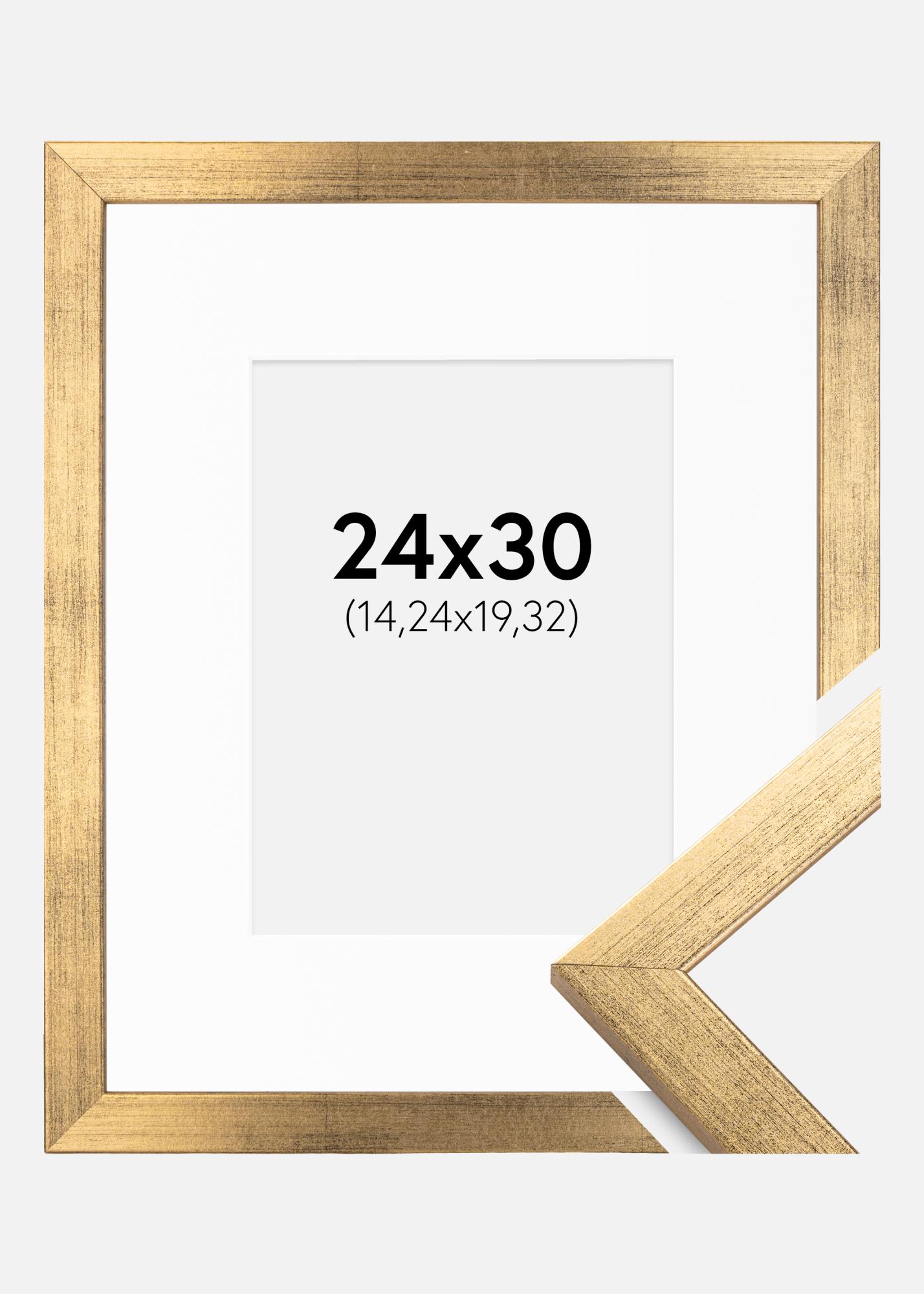 Ramme Stilren Gull 24x30 cm - Passepartout Hvit 6x8 inches