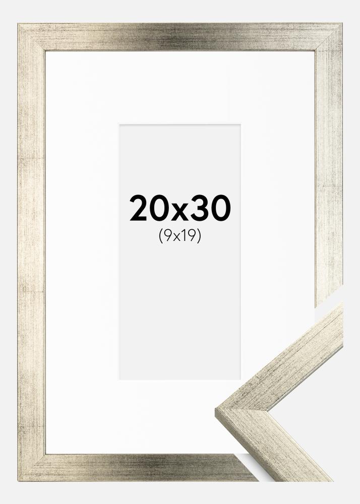 Ramme Stilren Sølv 20x30 cm - Passepartout Hvit 10x20 cm