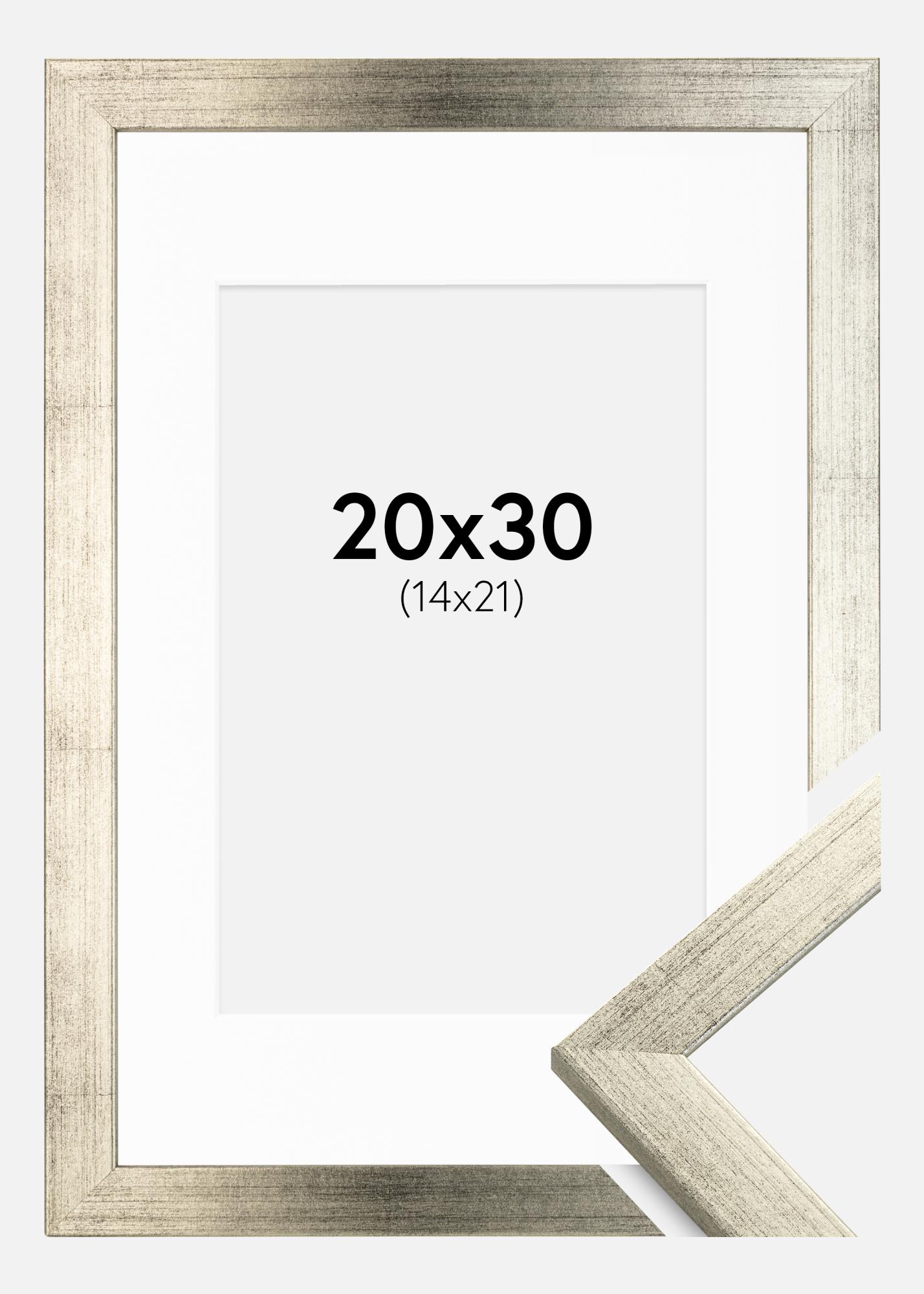 Ramme Stilren Sølv 20x30 cm - Passepartout Hvit 15x22 cm