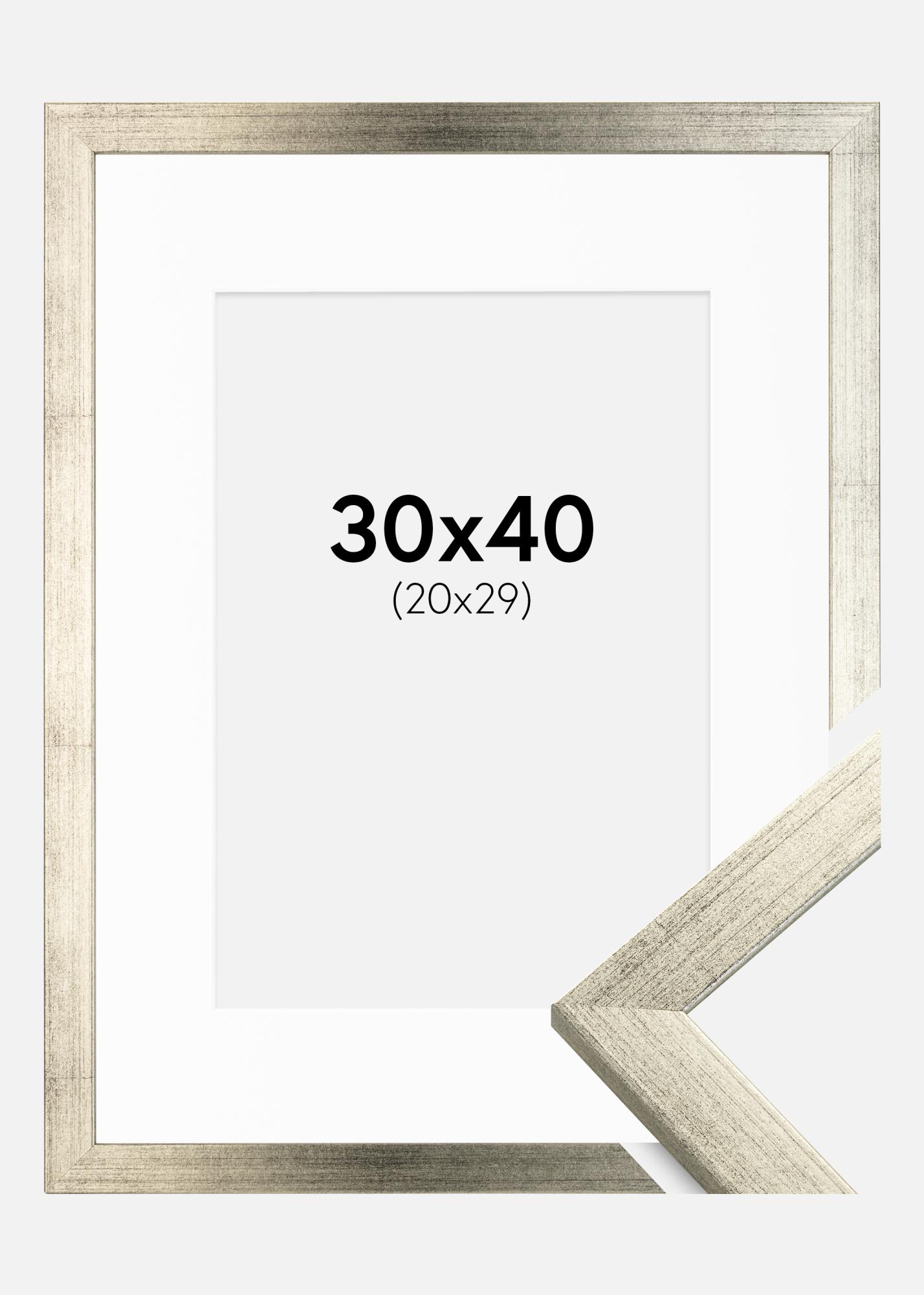 Ramme Stilren Sølv 30x40 cm - Passepartout Hvit 21x30 cm