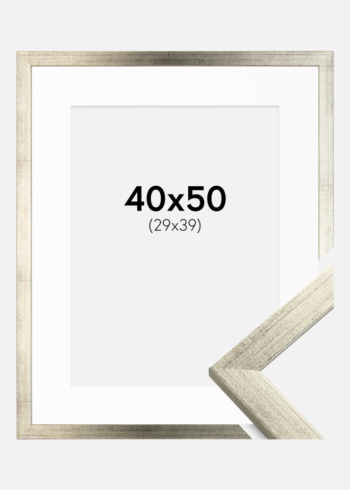 Ramme Stilren Sølv 40x50 cm - Passepartout Hvit 30x40 cm
