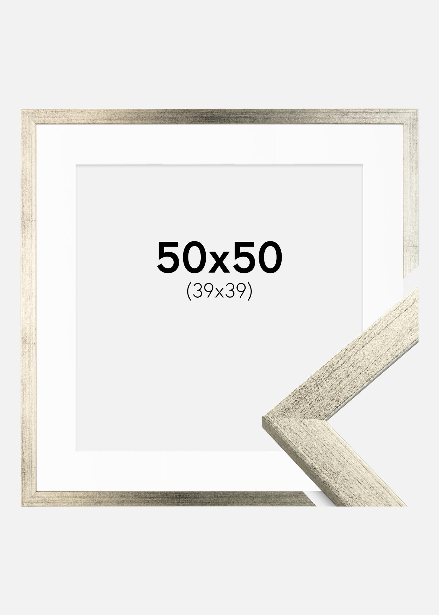 Ramme Stilren Sølv 50x50 cm - Passepartout Hvit 40x40 cm