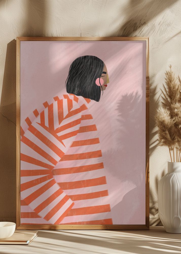 https://www.bgafotobutikk.no/The-Woman-With-the-Ornage-Stripes-Plakat-21x29_7-cm-A4
