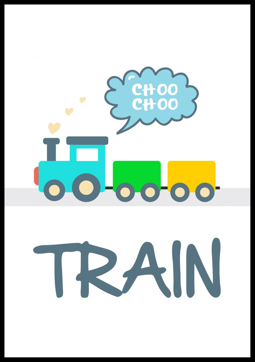 Plakat for barnerommet med et choo choo tog. Illustrasjonen er stilren men fargerik og er perfekt for barnet som fascineres av tog. Posters enkle men lekne formspråk gjør at den passer inn i alle interiører og sammen med andre grafiske prints. Kompletter med en ramme som matcher andre veggdekorasjoner og som fremhever noen av motivets aksentfarger for å skape en helhetsfølelse.