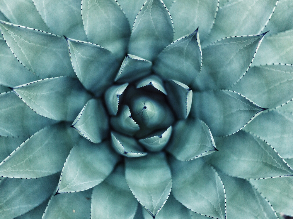 Grafisk plakat av et vakkert nærbilde av en grønn-blå kaktus. Bladenes tydlige form og mørke tagger med dempet turkis farge skaper et behagelig mønster som ser flott ut sammen med all slags innredning. Med en mørk bilderamme klarer fotografiet seg godt alene på veggen, men det kan også brukes som en del av en collage med andre naturfotografi.