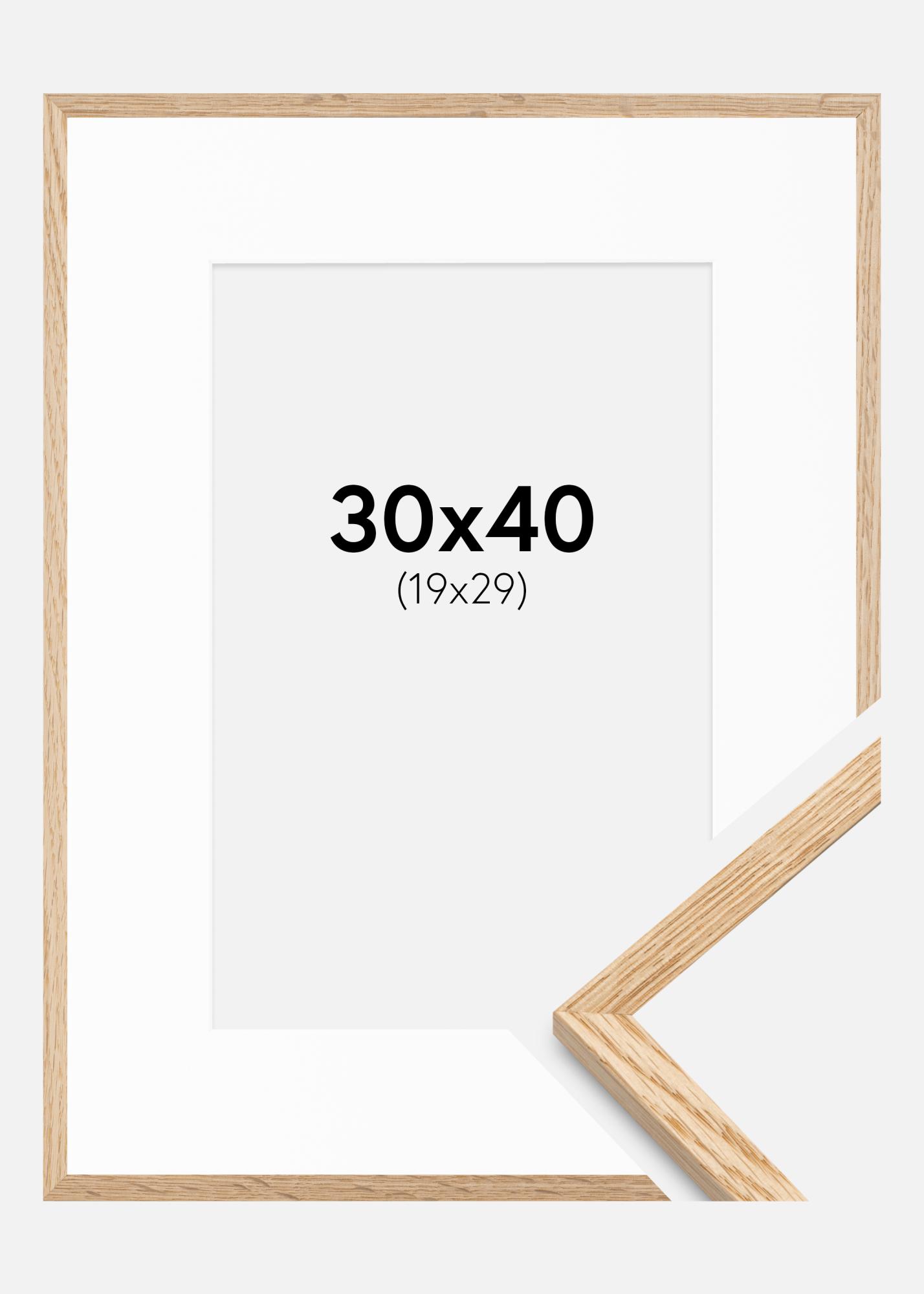 Ramme Tynn Eik 30x40 cm - Passepartout Hvit 20x30 cm