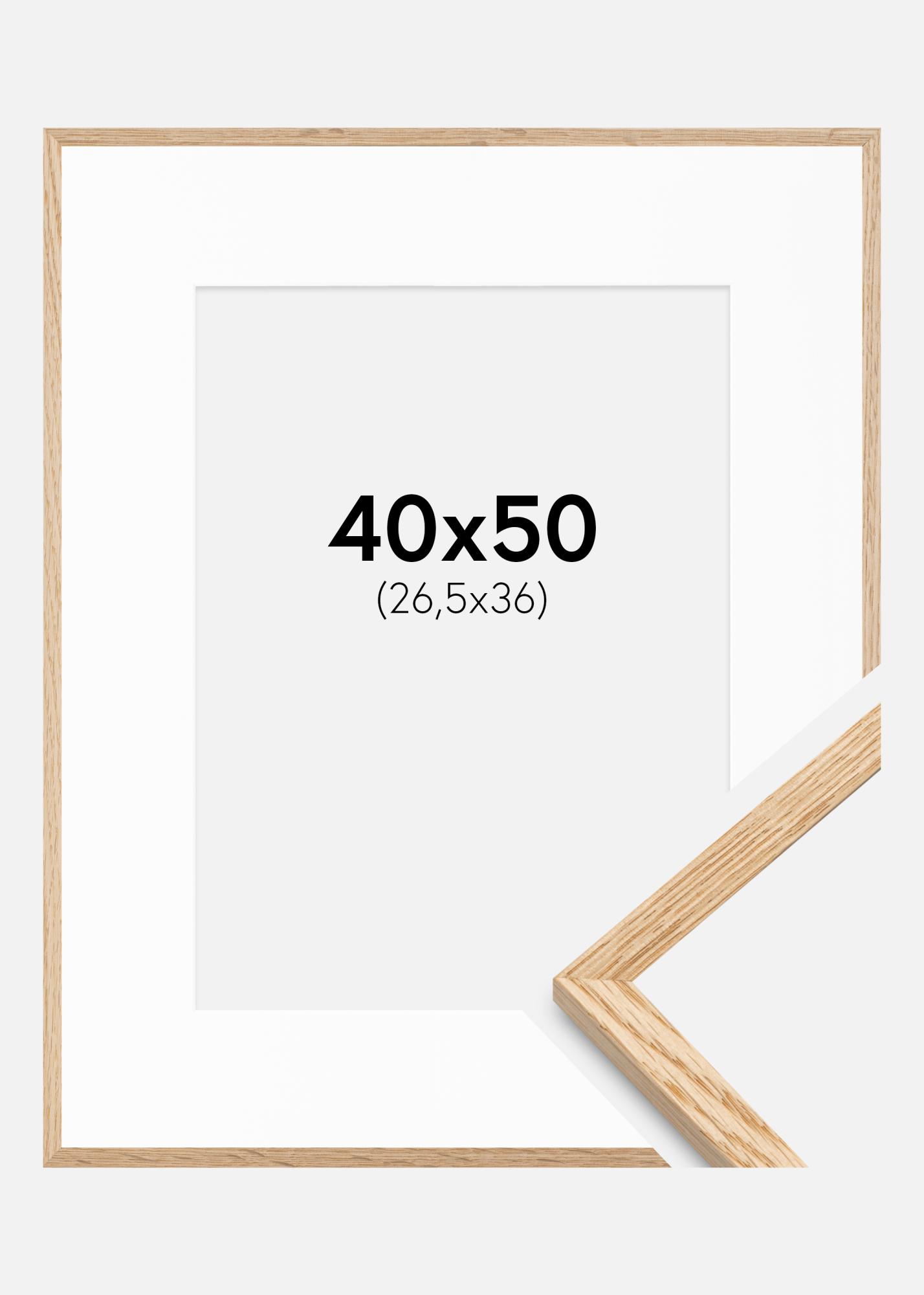 Ramme Tynn Eik 40x50 cm - Passepartout Hvit 27,5x37 cm