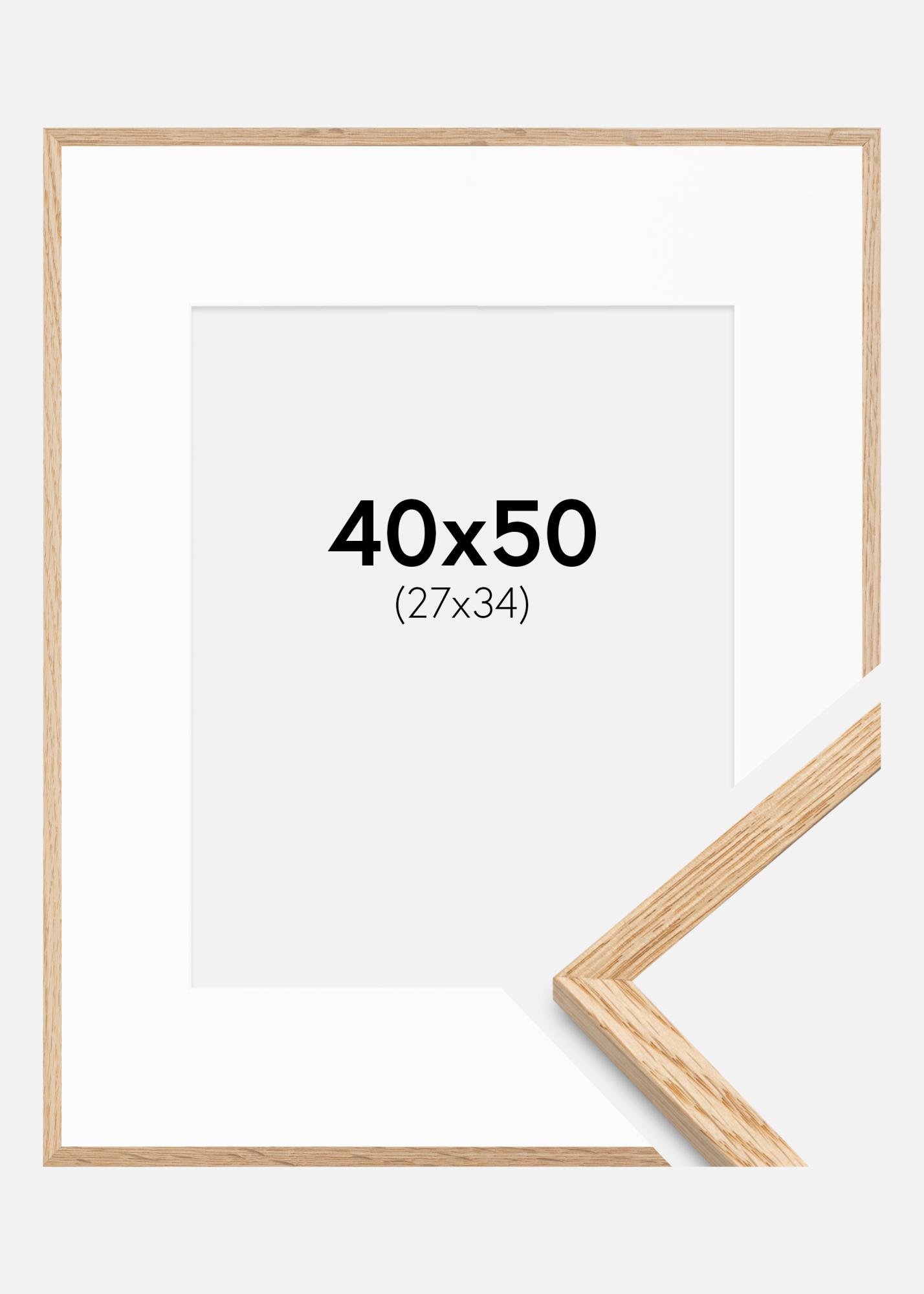 Ramme Tynn Eik 40x50 cm - Passepartout Hvit 28x35 cm
