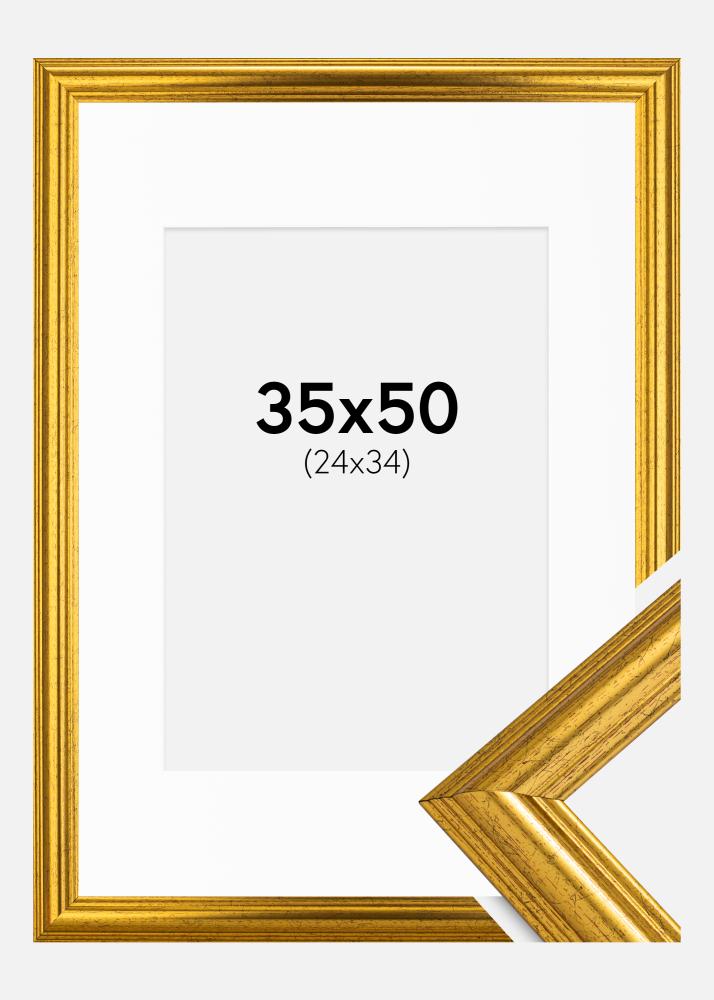 Ramme Västkusten Gull 35x50 cm - Passepartout Hvit 25x35 cm